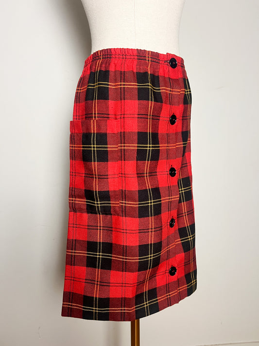 Jupe Vintage Tartan Rouge Noir T 42/44 - Boutonnée Courte/Genoux - Élastique Détendu
