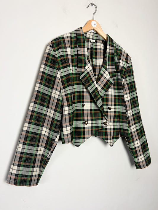 Veste Courte Tartan Vintage (Vert/Brun) - Croisée Fabriquée en France - T. 40 FR