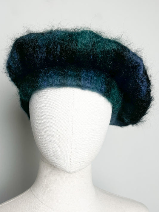 Béret / Bonnet Vintage- Laine et Angora Doux - Noir Marine Vert_ Taille 54