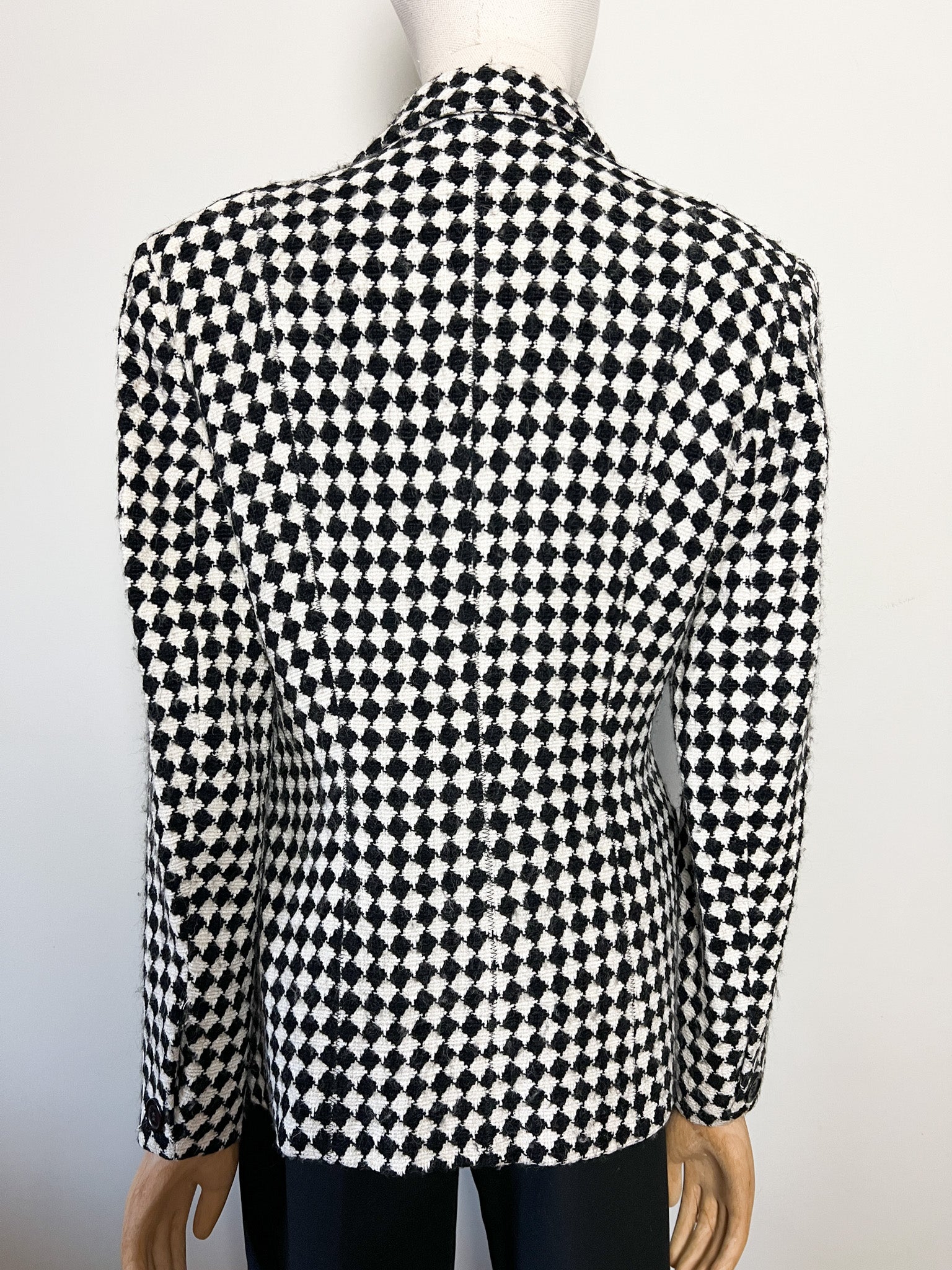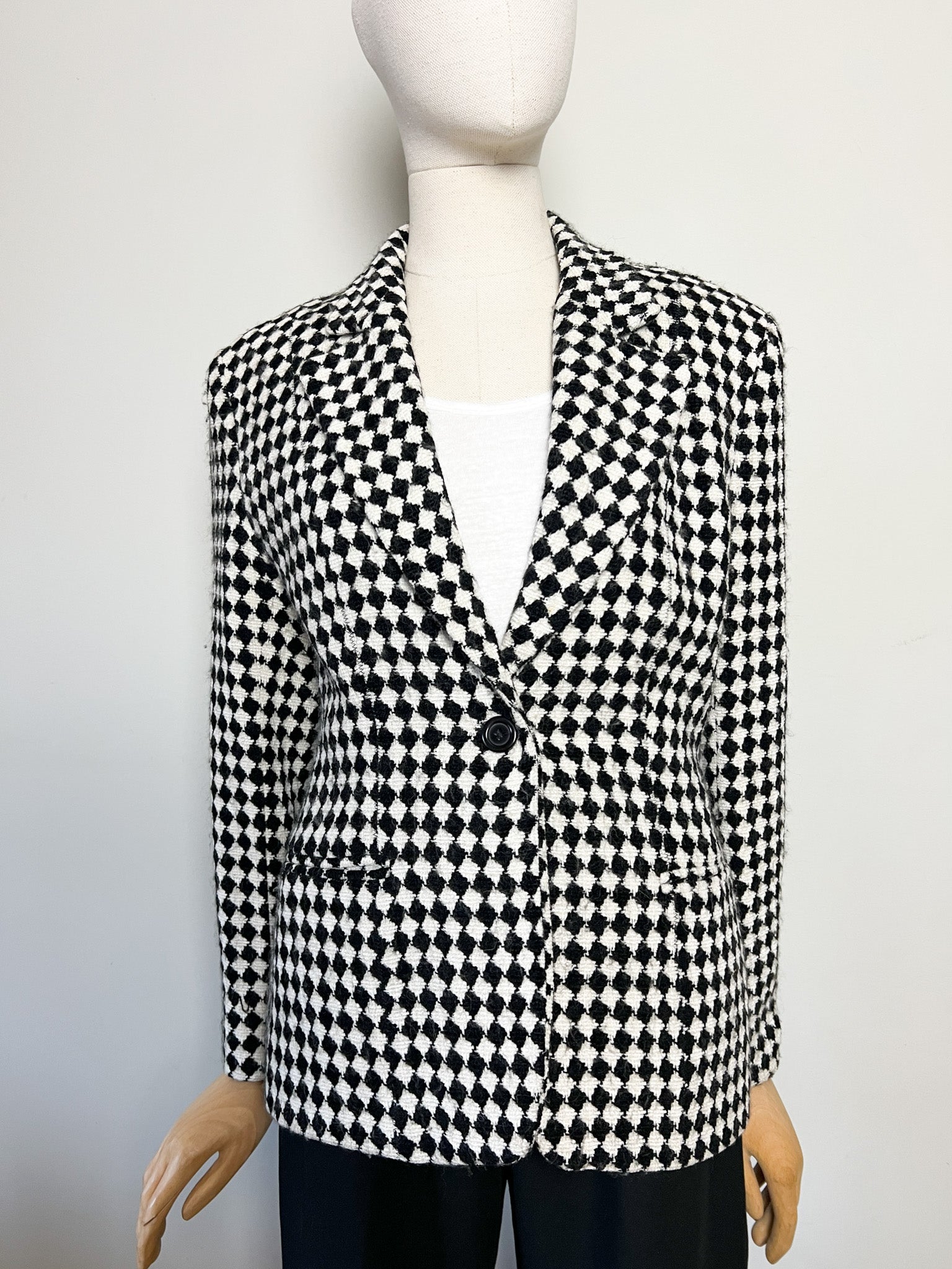 Blazer Créateur Irène Van Ryb - Laine/Viscose - Motif Losange Noir & Blanc - Made in France - T. 38 FR