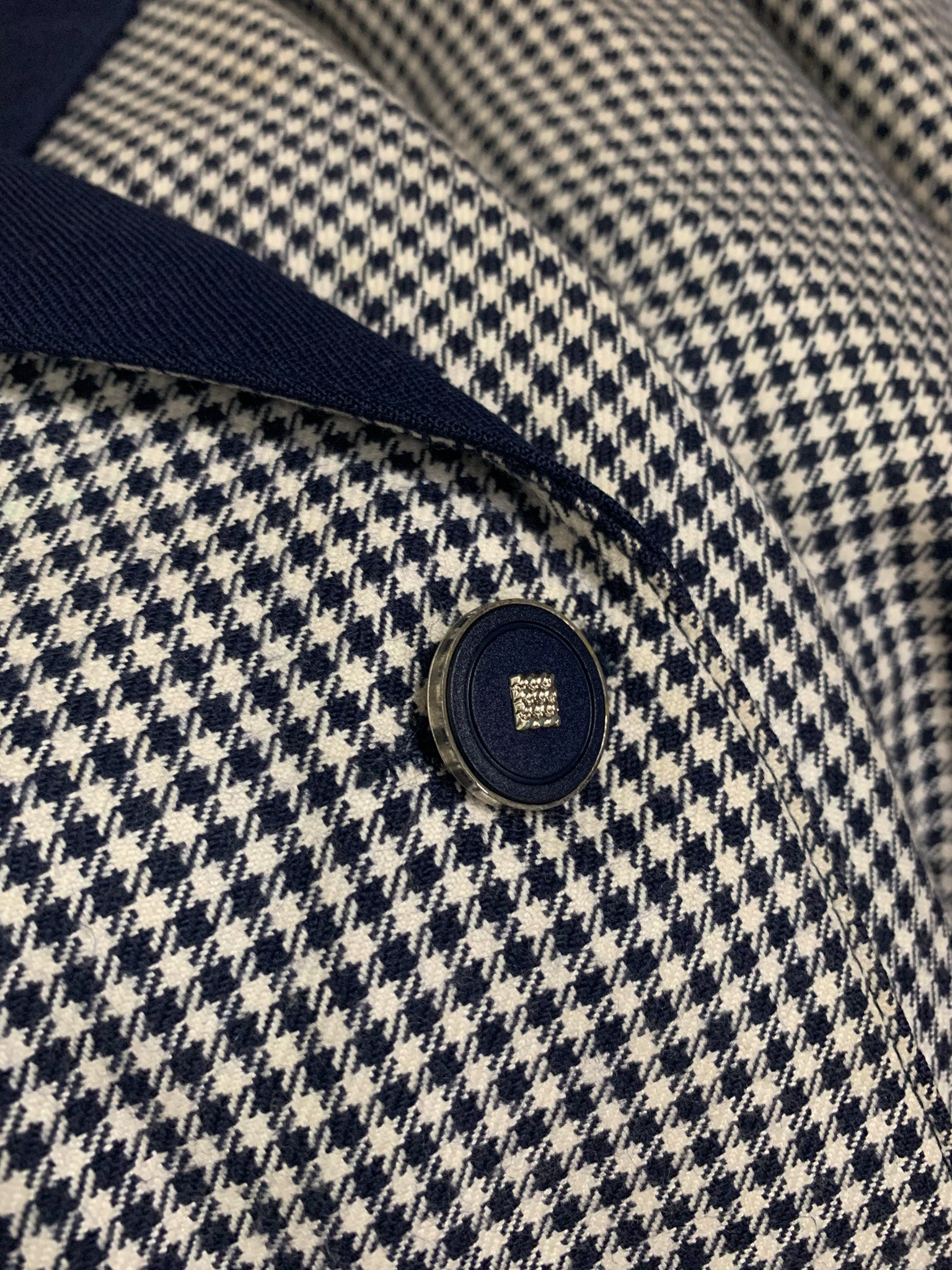 · Motif : Pied-de-Poule intemporel (Marine et Blanc).