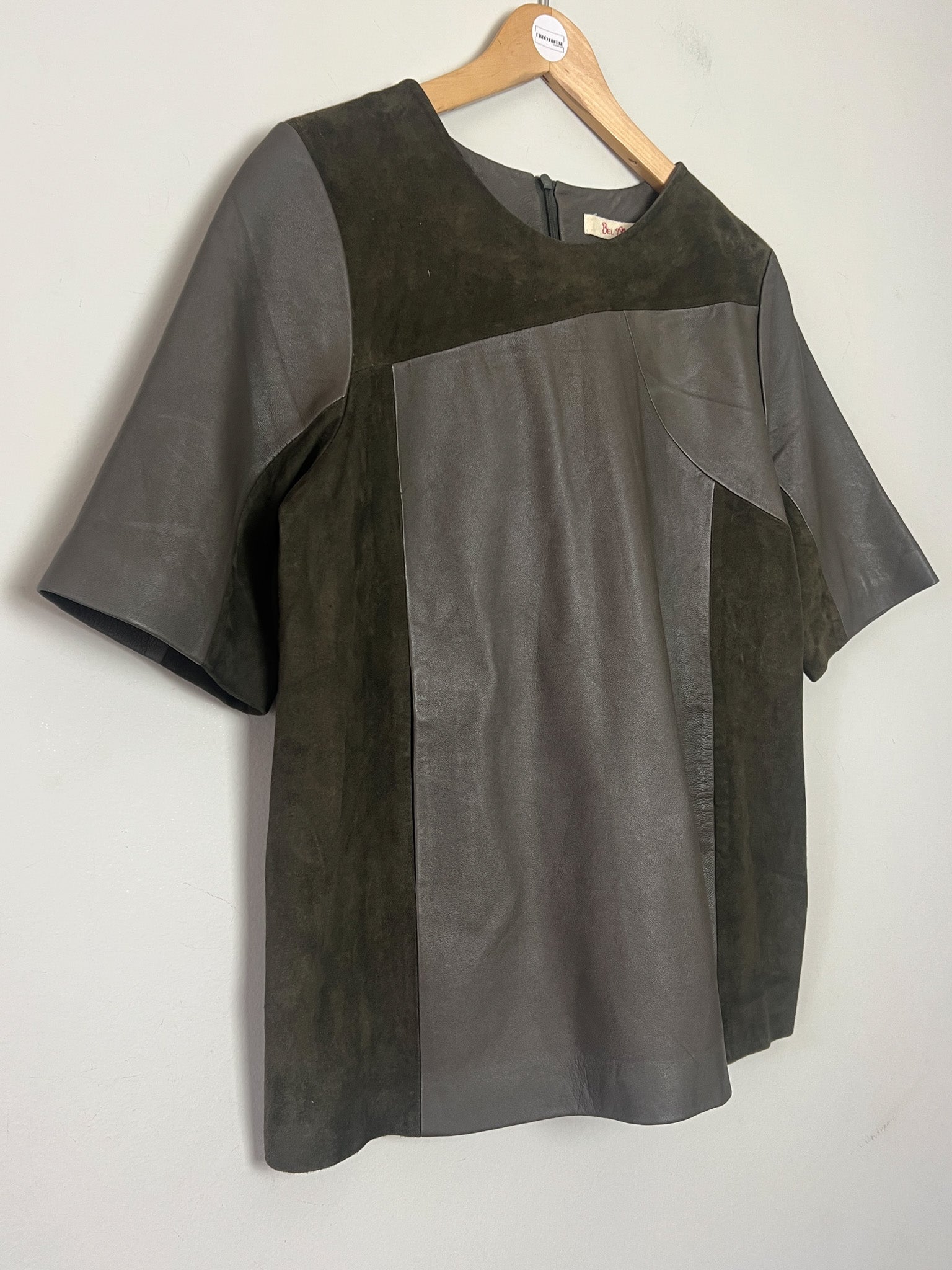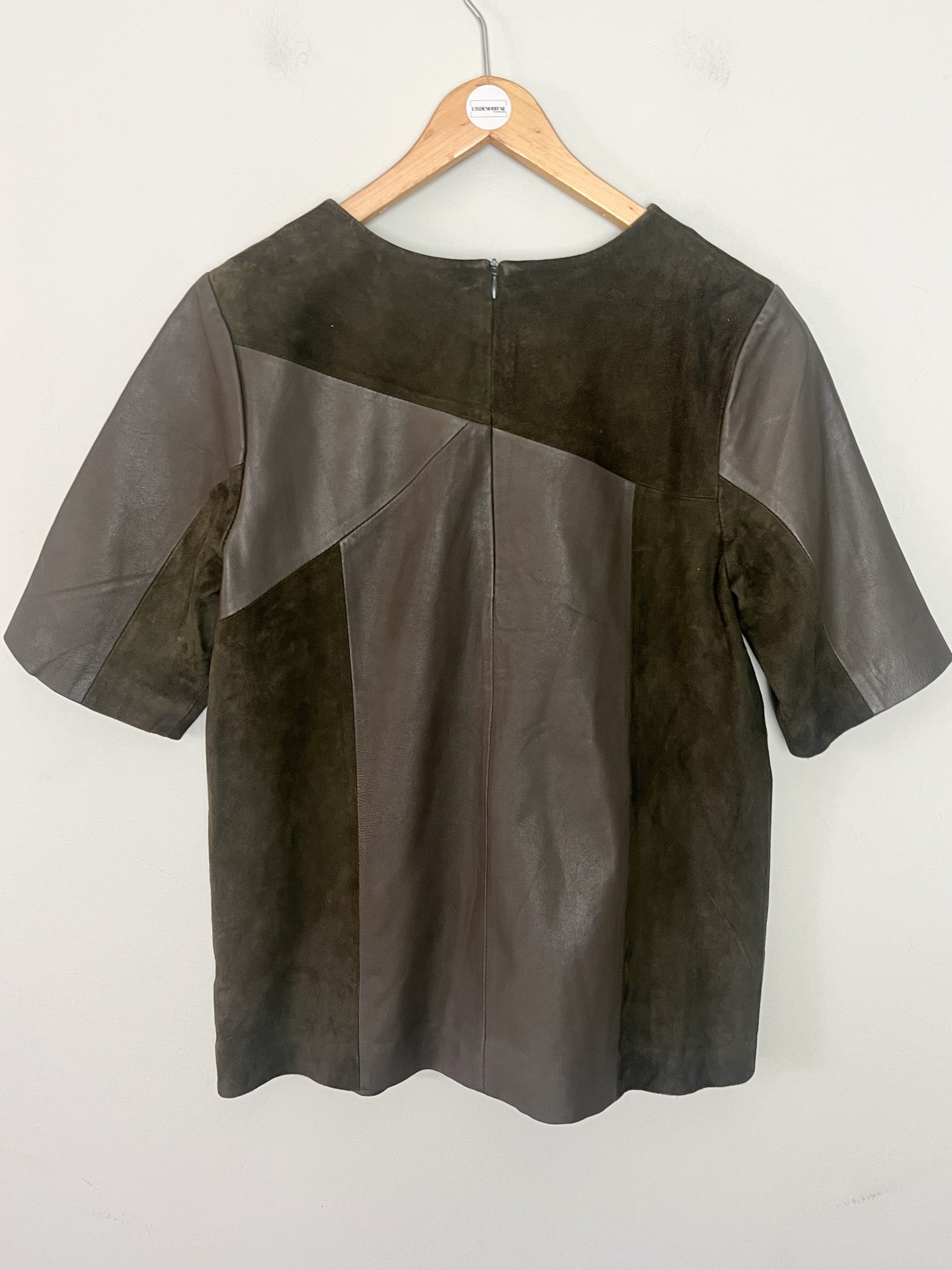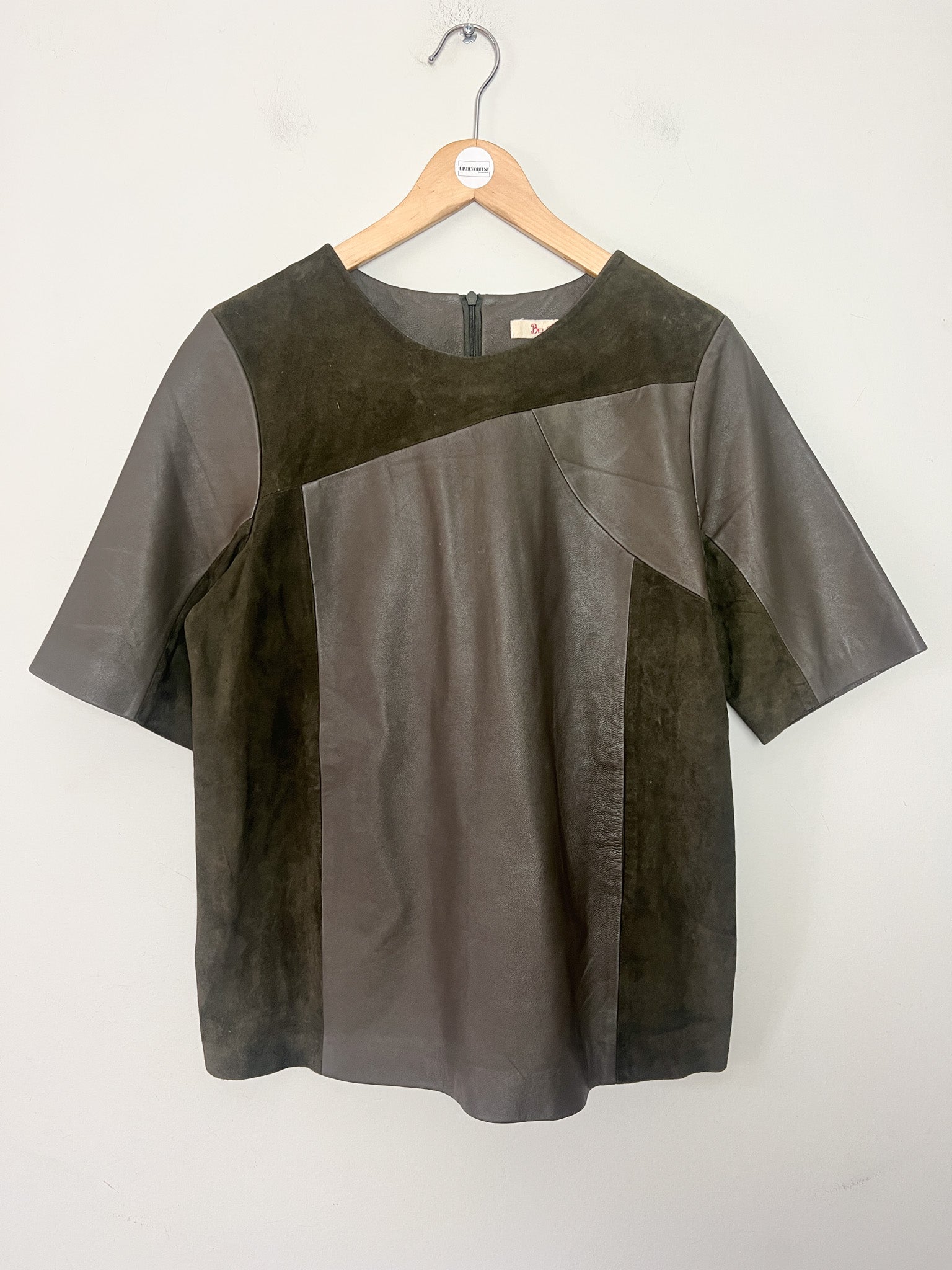 Matière Noble : Fabriqué en 100% CUIR véritable, ce top joue sur un élégant contraste de textures avec des empiècements en cuir lisse et en cuir velours (daim).