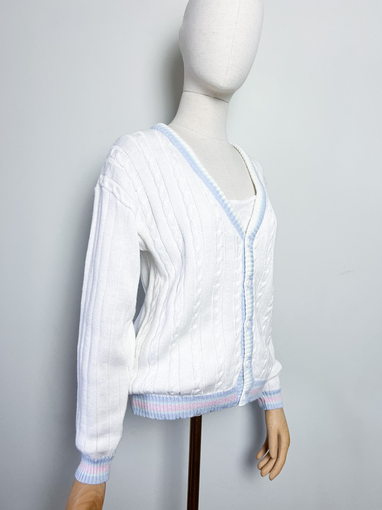 Cardigan Vintage Marèse en Coton - Torsades & Bandes Pastels - T. 36/38