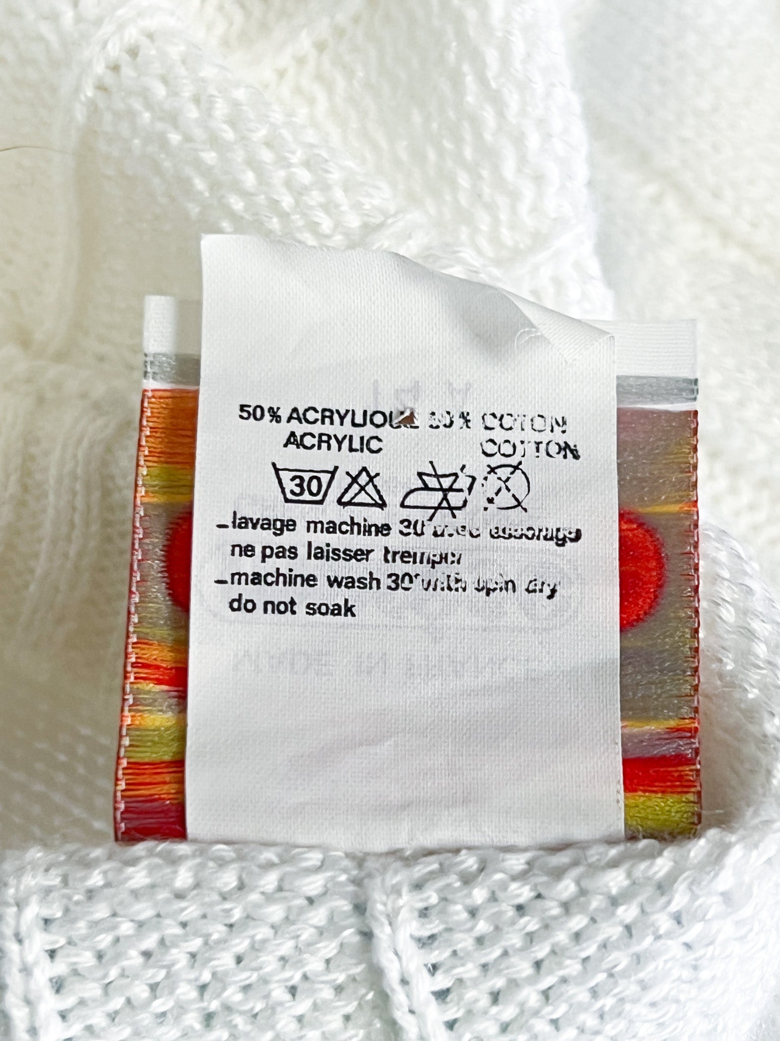 Ce cardigan vintage Marèse est la pièce parfaite pour un style college-girl ou une touche rétro. Son mélange de coton et d'acrylique le rend très confortable et son design, avec ses torsades et ses bandes colorées (bleu, turquoise, rose), en fait un vêtement unique. Sa coupe droite, ses épaules tombantes et ses manches larges se marient à merveille avec un jean ou une jupe, pour un look décontracté et féminin. Fabriqué en France.