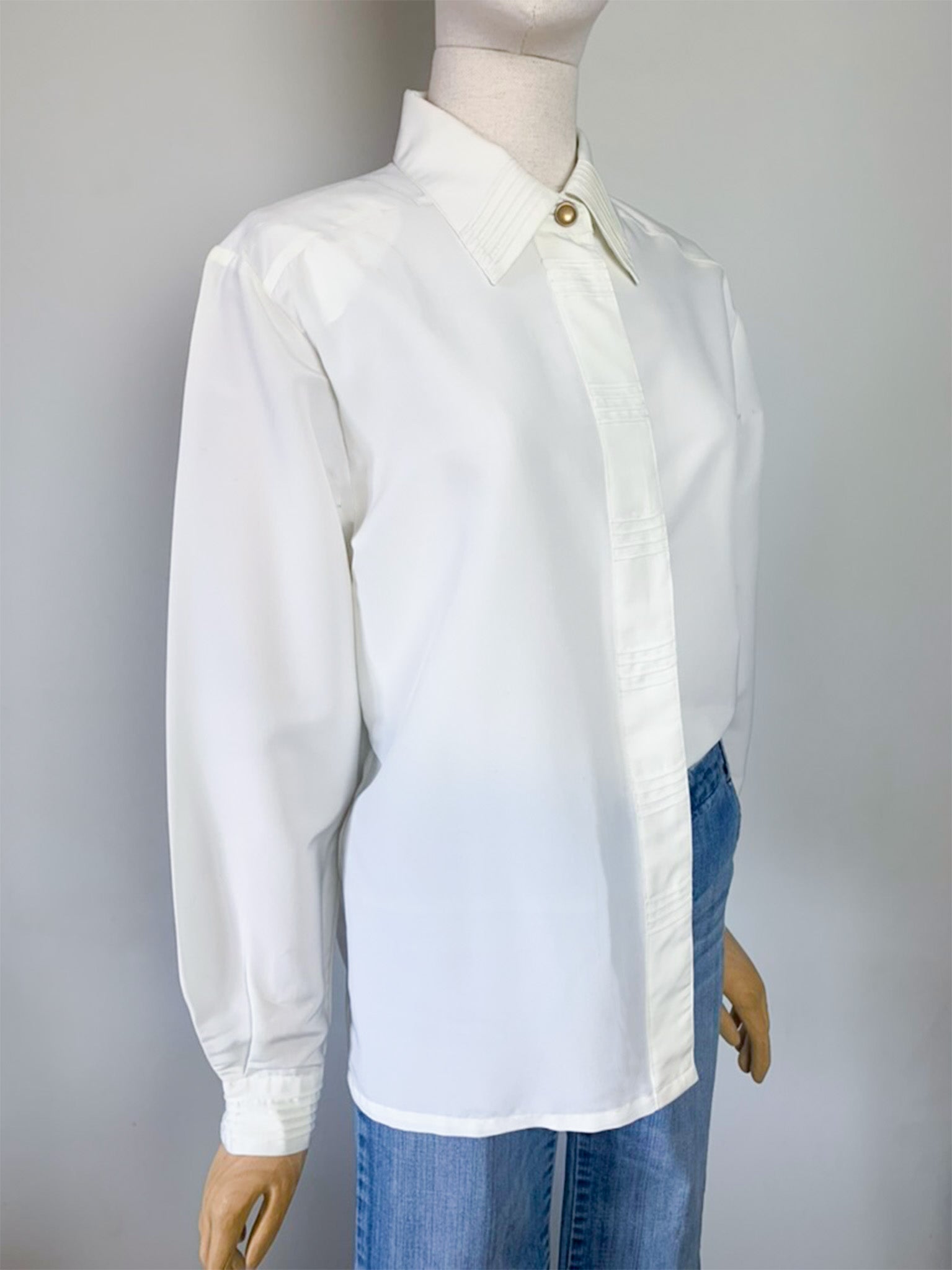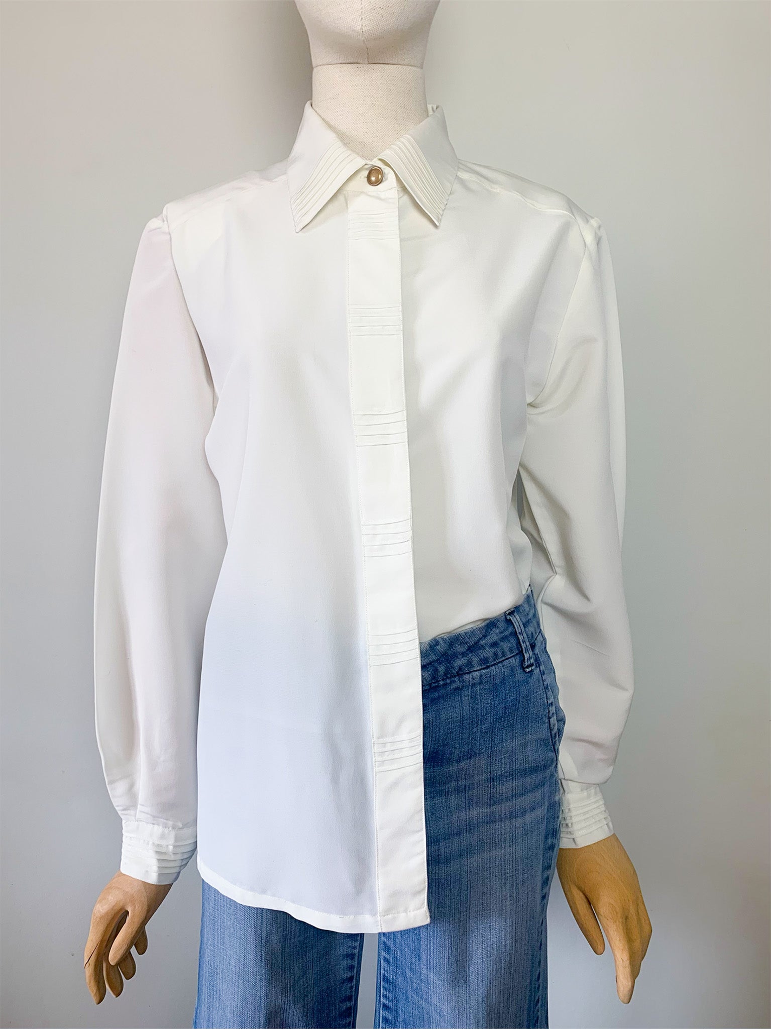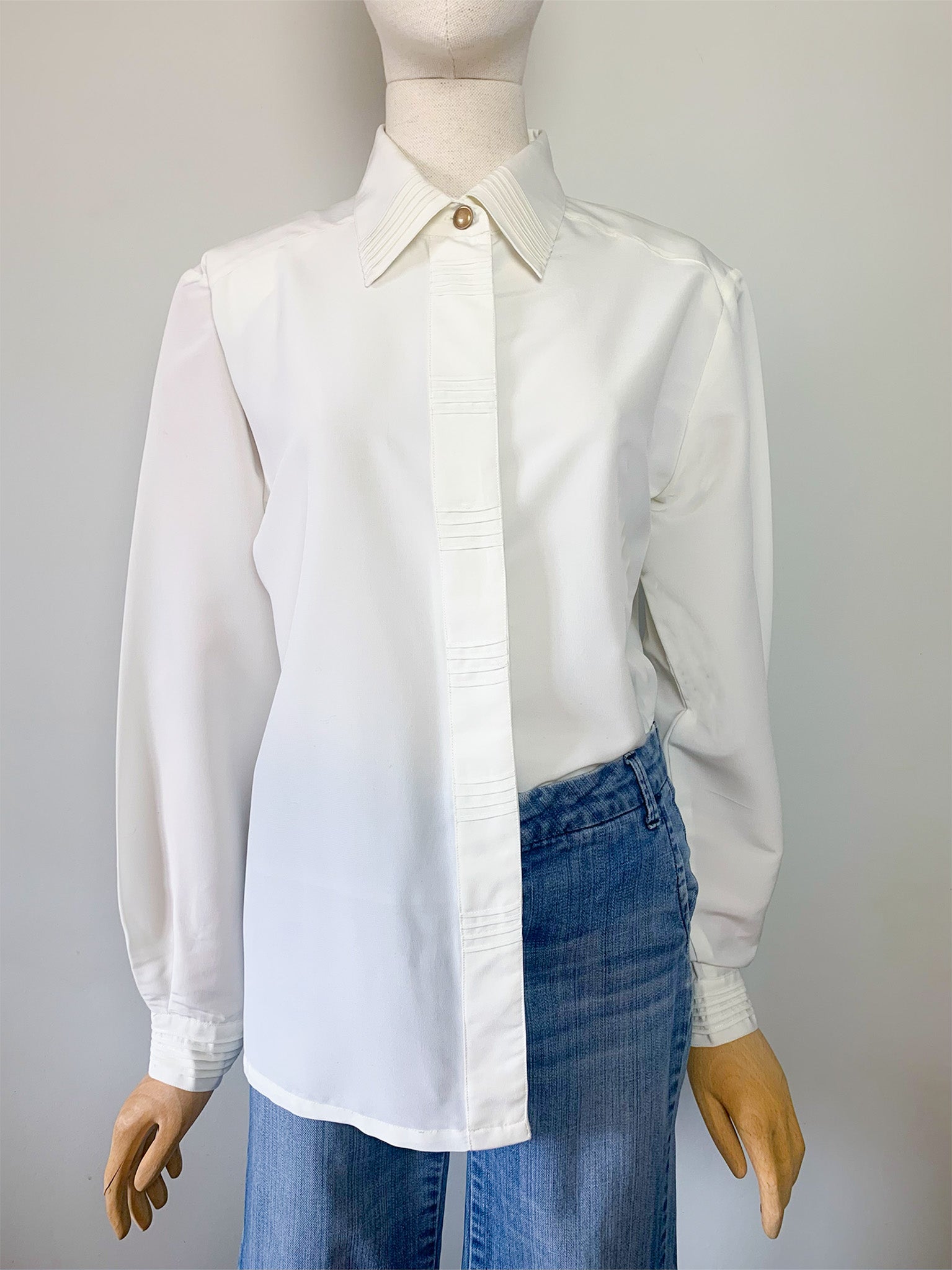 Chemisier Vintage Crème à Plis et Épaulettes - Taille 40