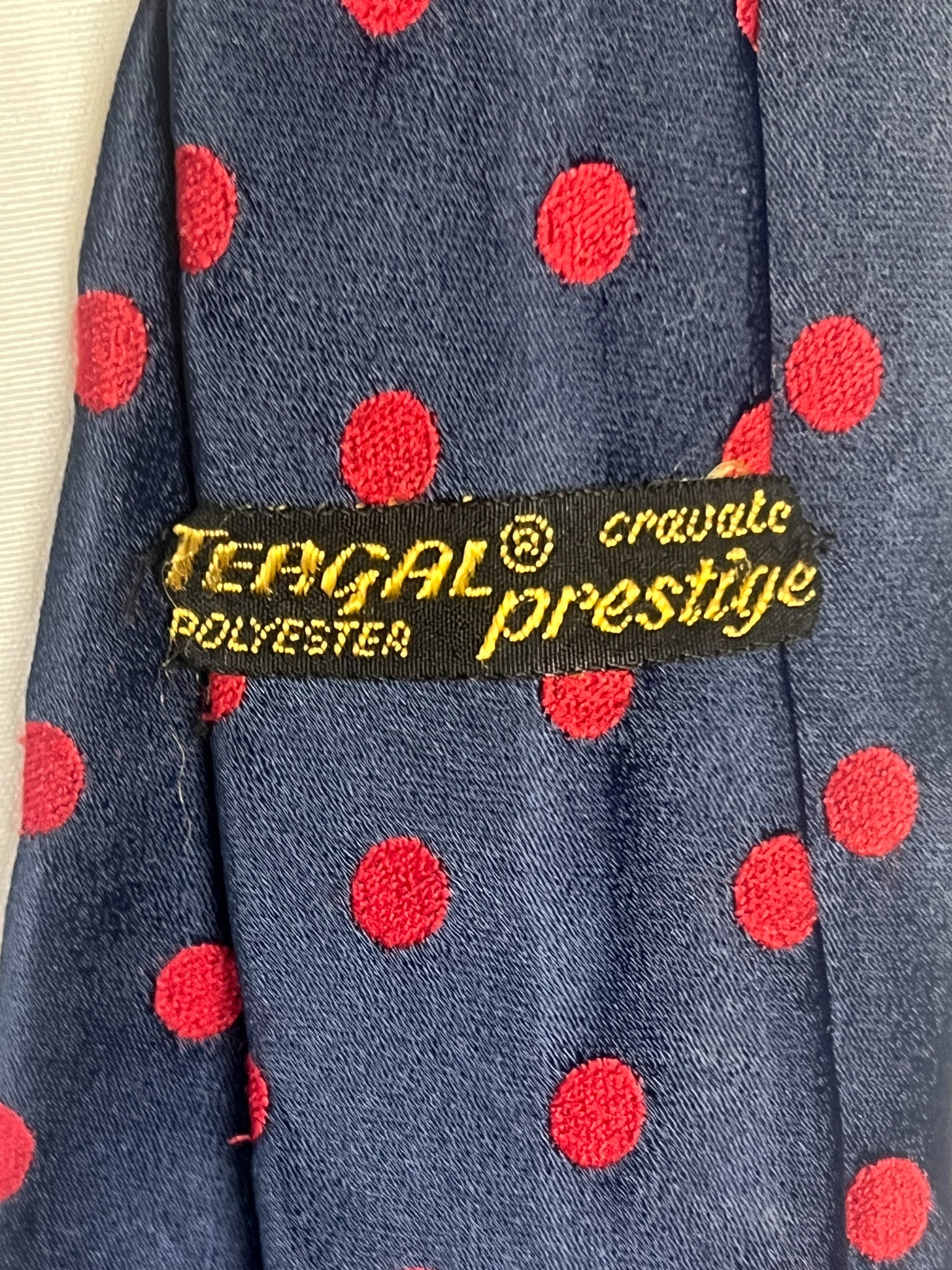 Cravate Vintage Classique à Pois - Bleu Marine & Rouge - Polyester Années 80/90
