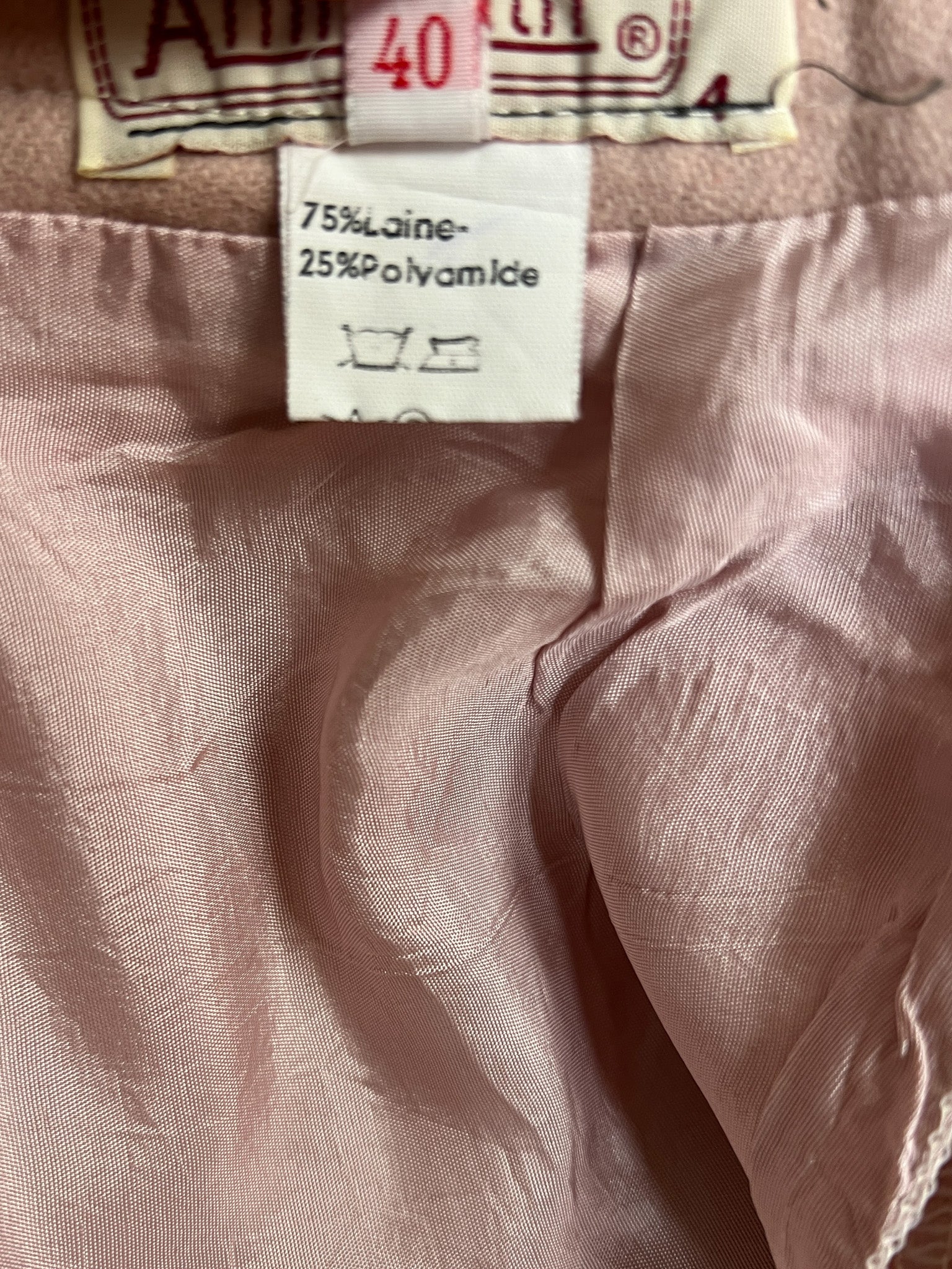 Jupe Cloche Vintage Infinitif - Laine Rose Pâle Brodée - Années 80/90 - Taille 38