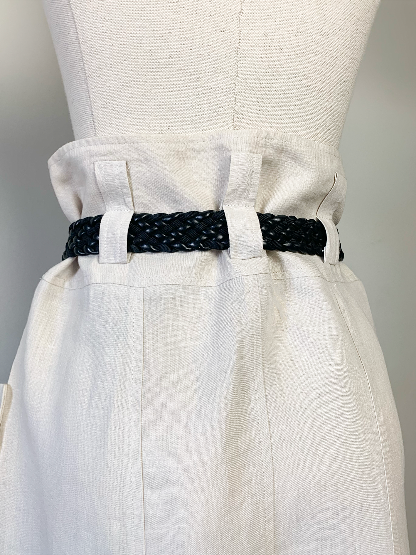 - taille haute à porter avec ceinture (ceinture non d'origine vendue avec la jupe)