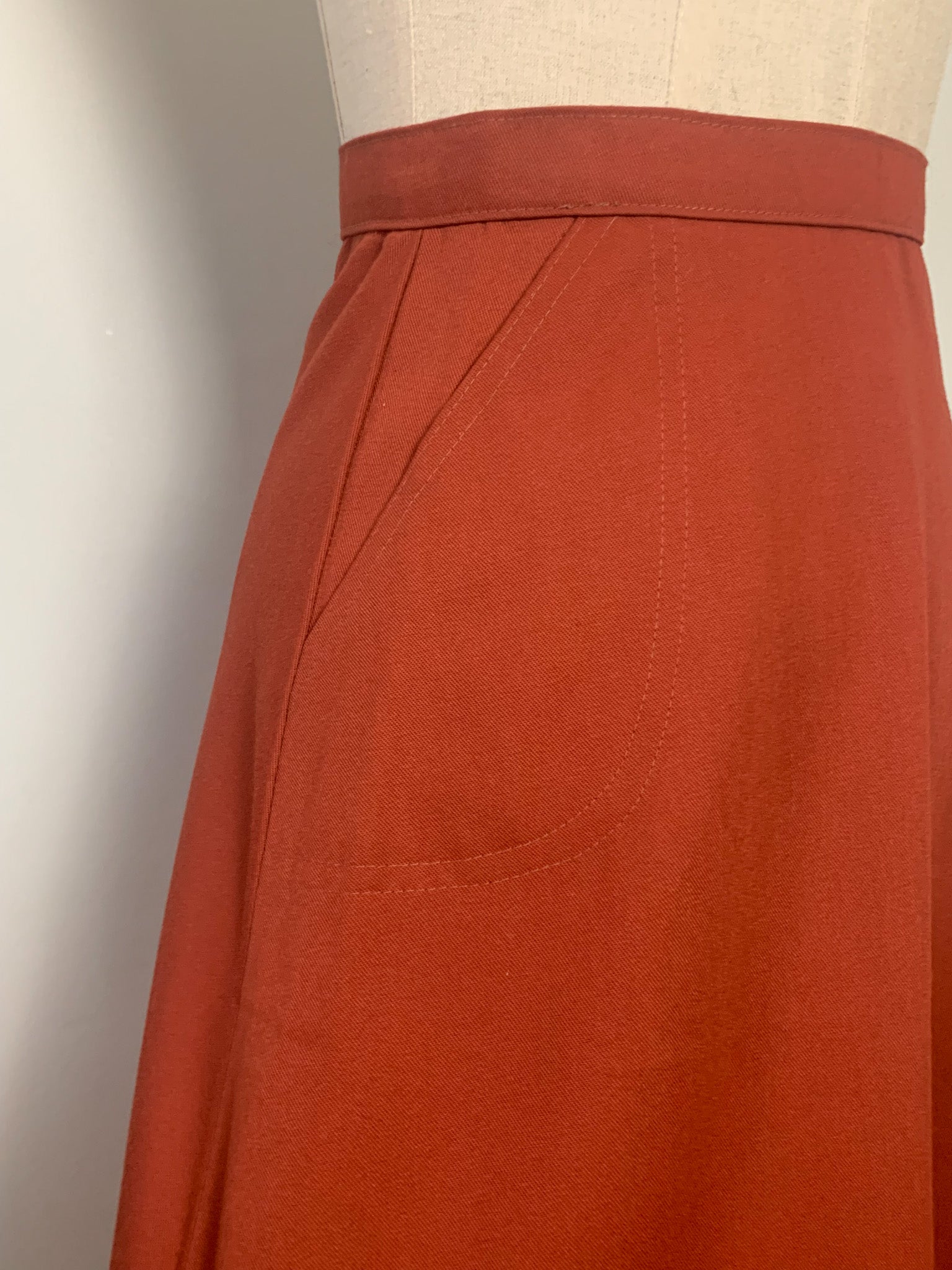 Jupe Trapèze Vintage Années 70 - Marron Brique - T. 32/34