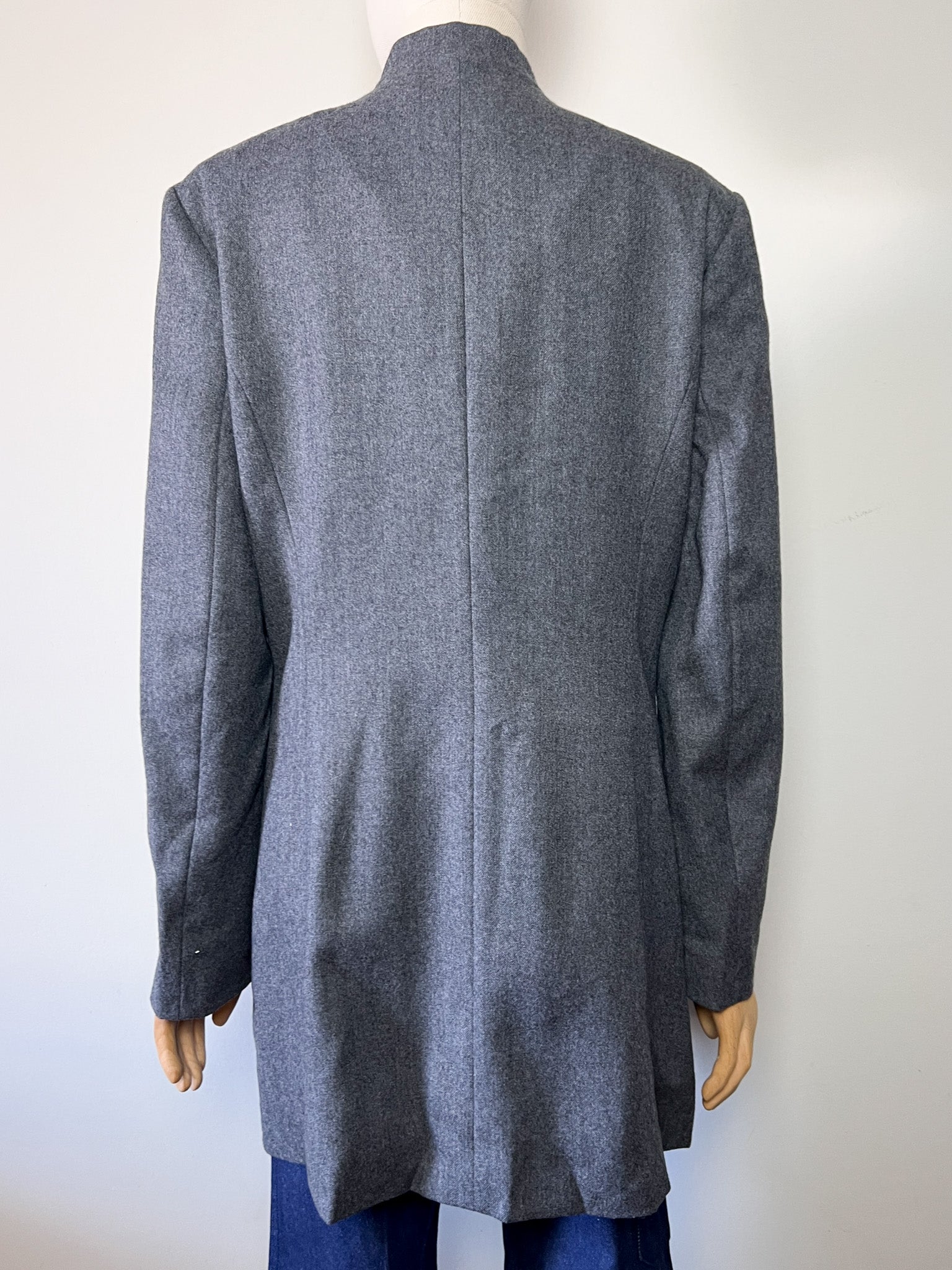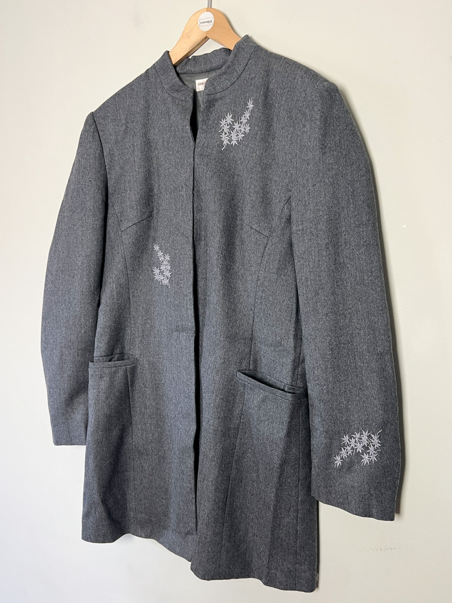 Manteau Armand Ventilo Vintage - Laine Grise Brodée - Col Montant - Années 80/90 - T. 42