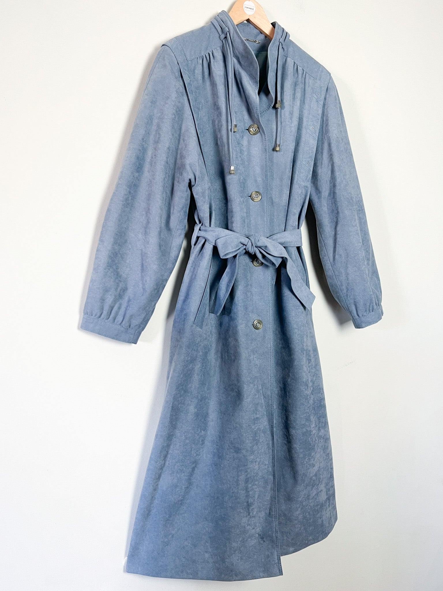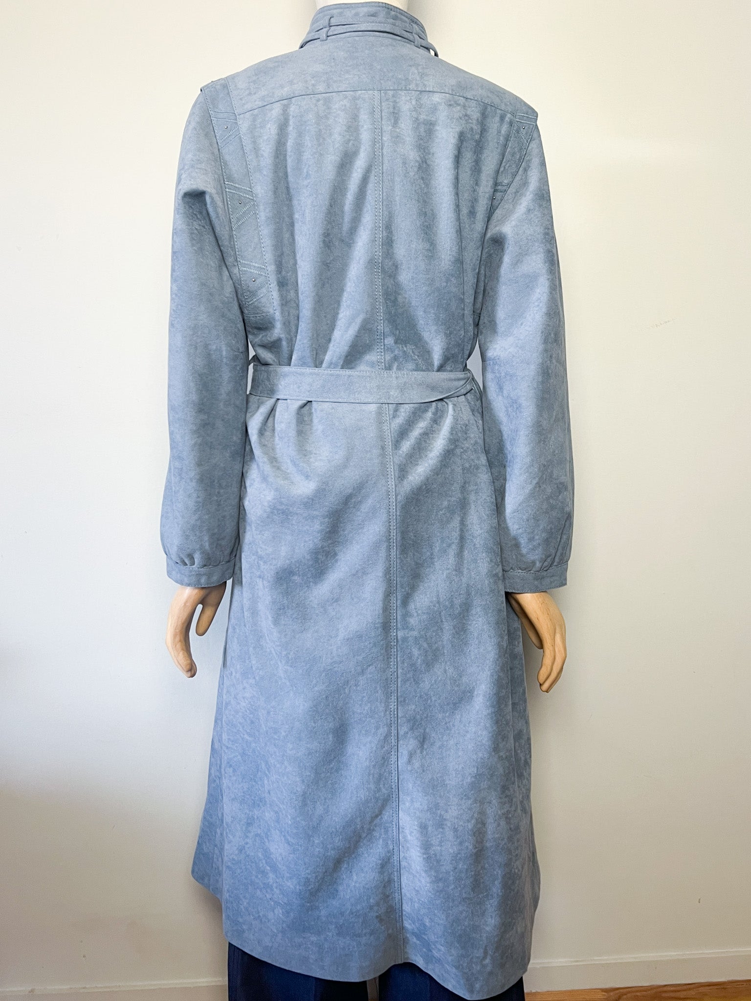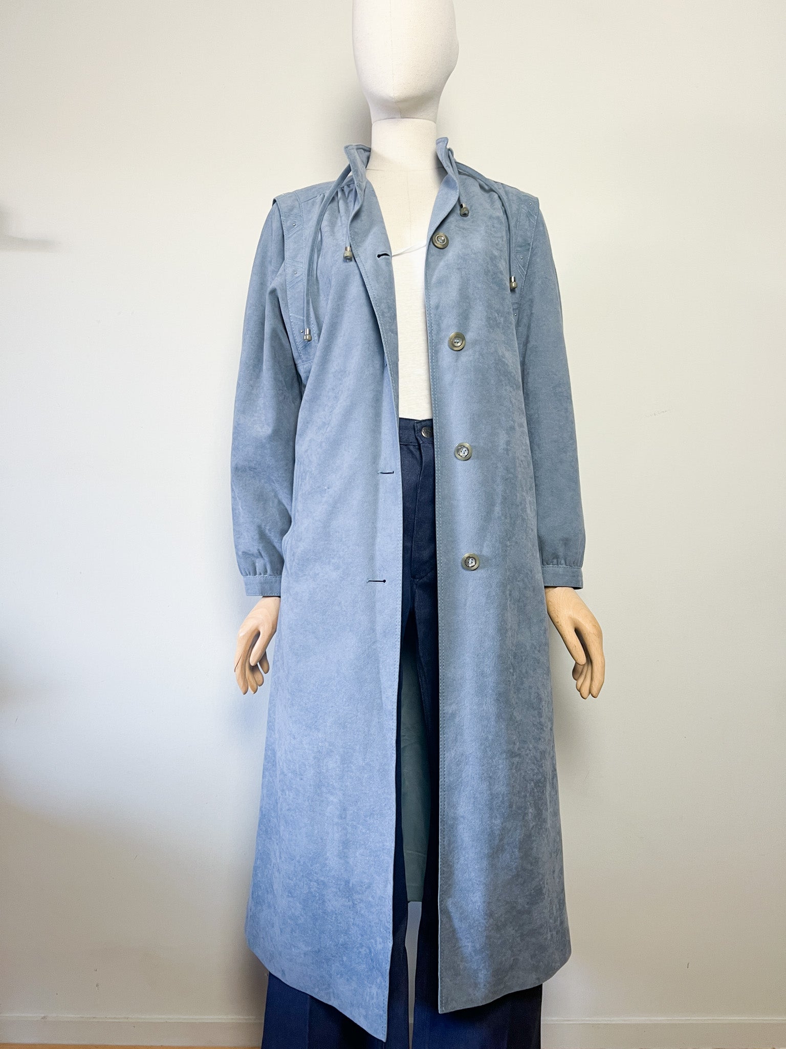 Manteau Long Vintage GOTZ MODELL - Suédine Bleu Ciel Années 80 - T. 38/40