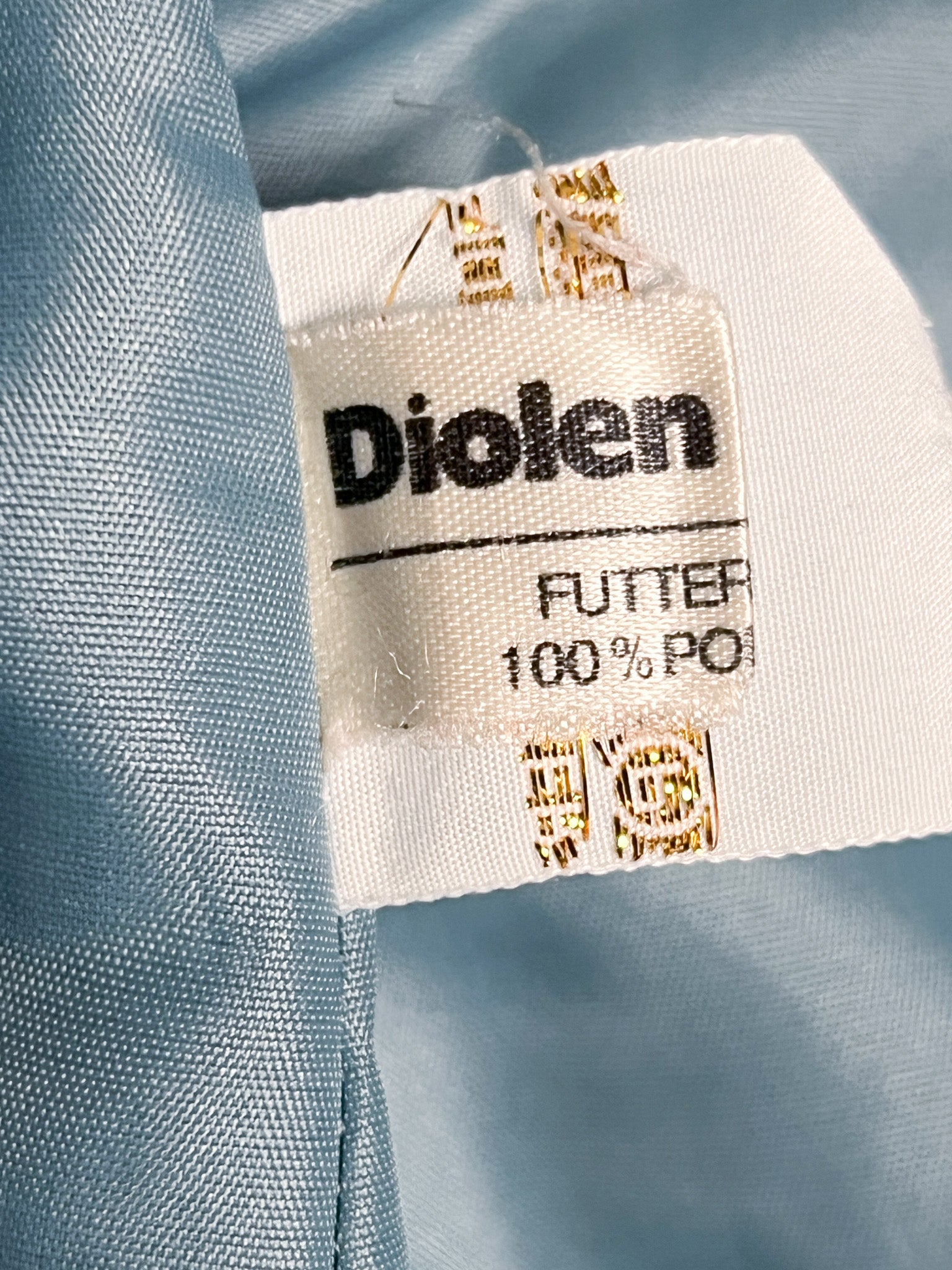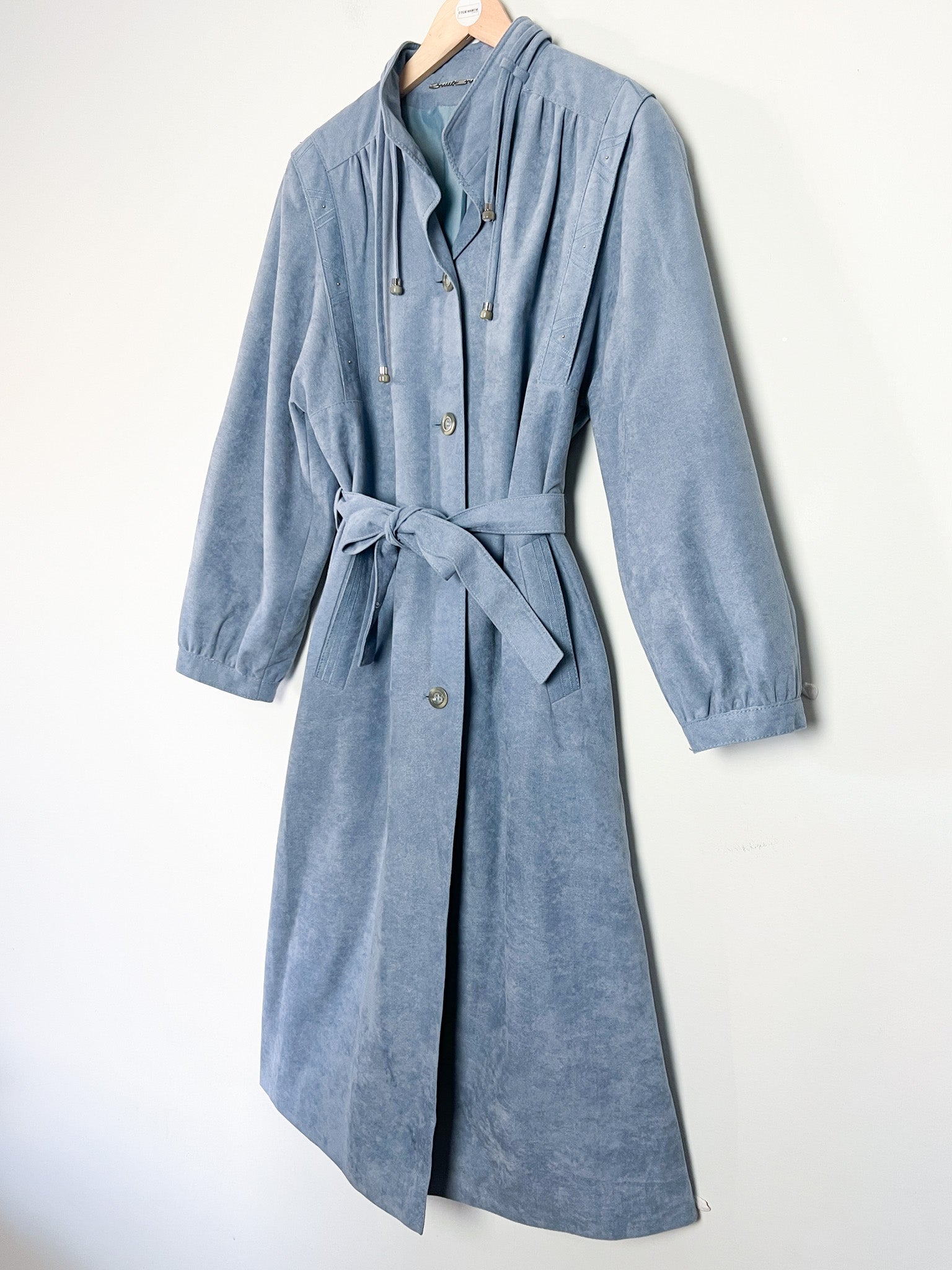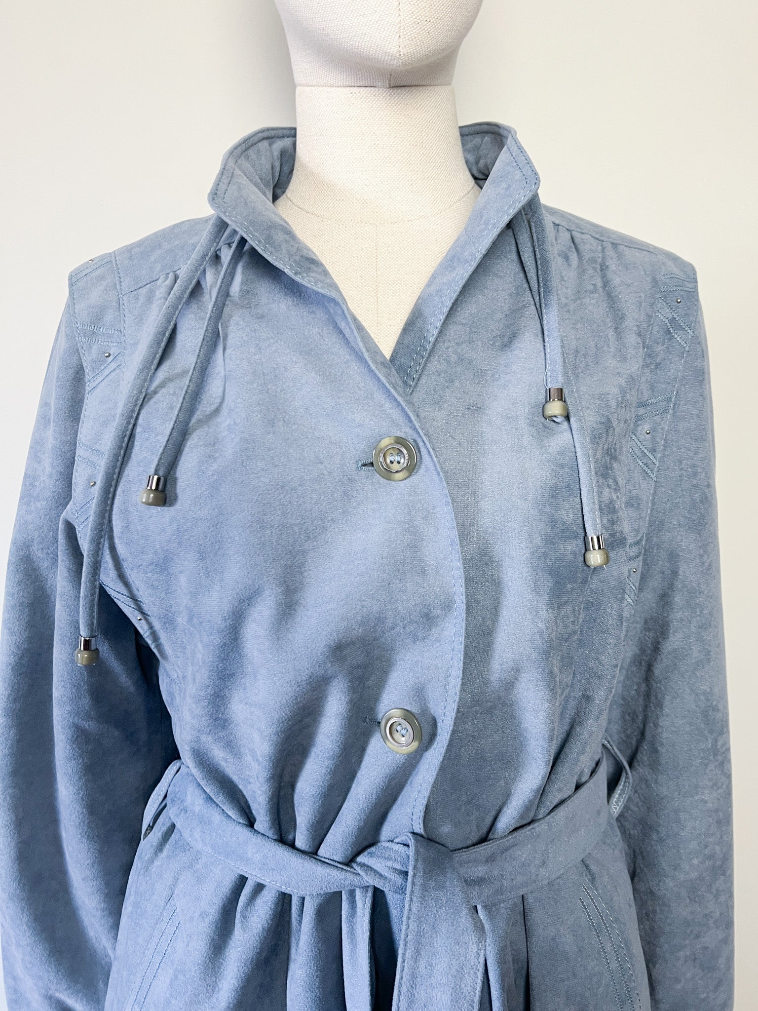 Manteau Long Vintage GOTZ MODELL - Suédine Bleu Ciel Années 80 - T. 38/40