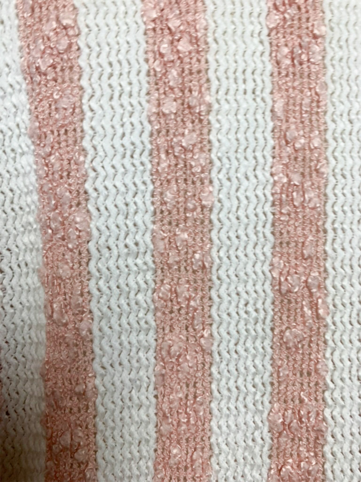 Ce pull vintage C&A est un incontournable pour un look à la fois doux et rétro. Son motif à rayures rose et blanc est intemporel, et sa coupe ample avec des emmanchures larges en fait un vêtement très confortable à porter au quotidien. Le col cheminée et les bords-côtes aux poignets et à la taille ajoutent une touche d'originalité à cette pièce.