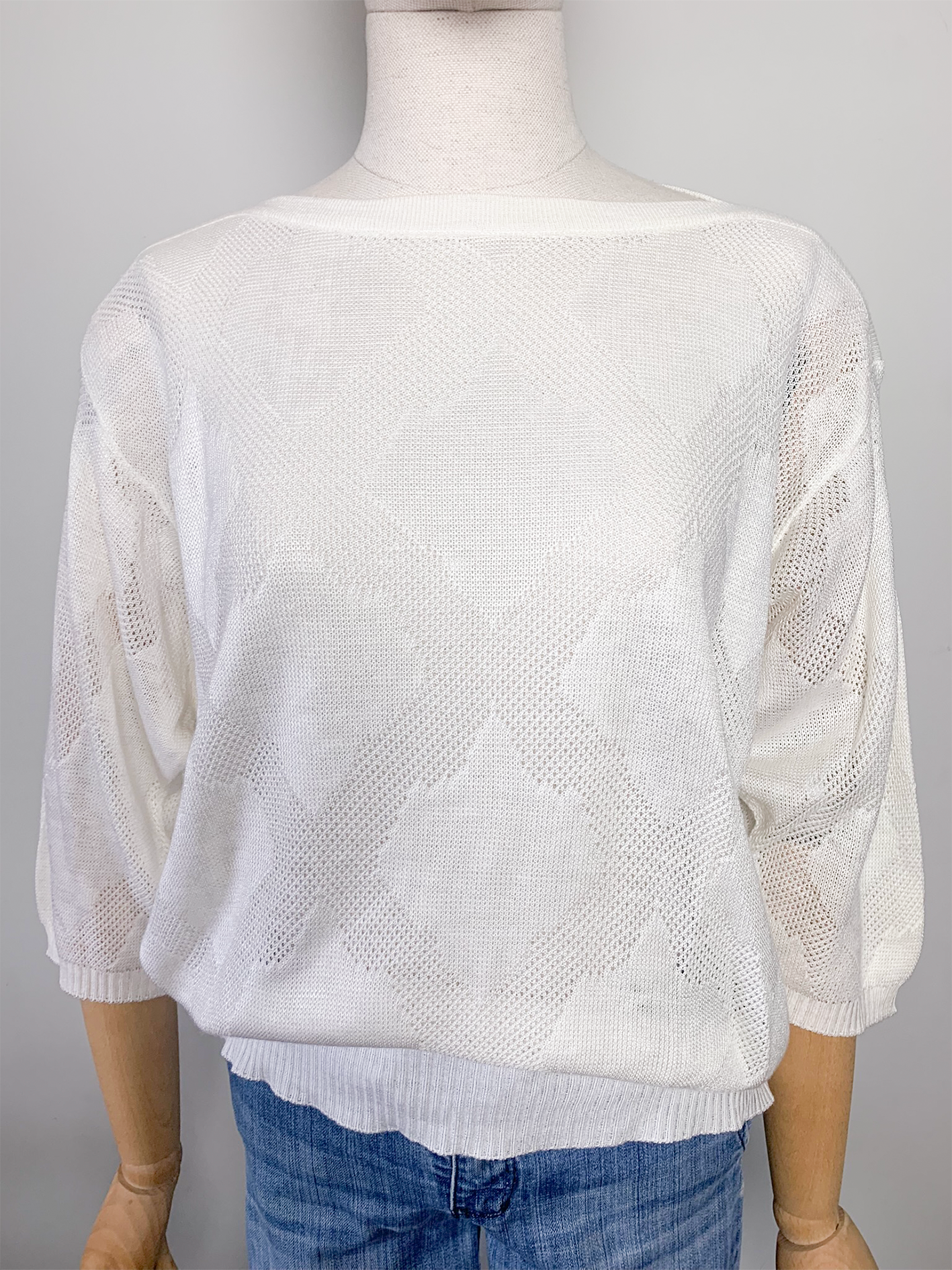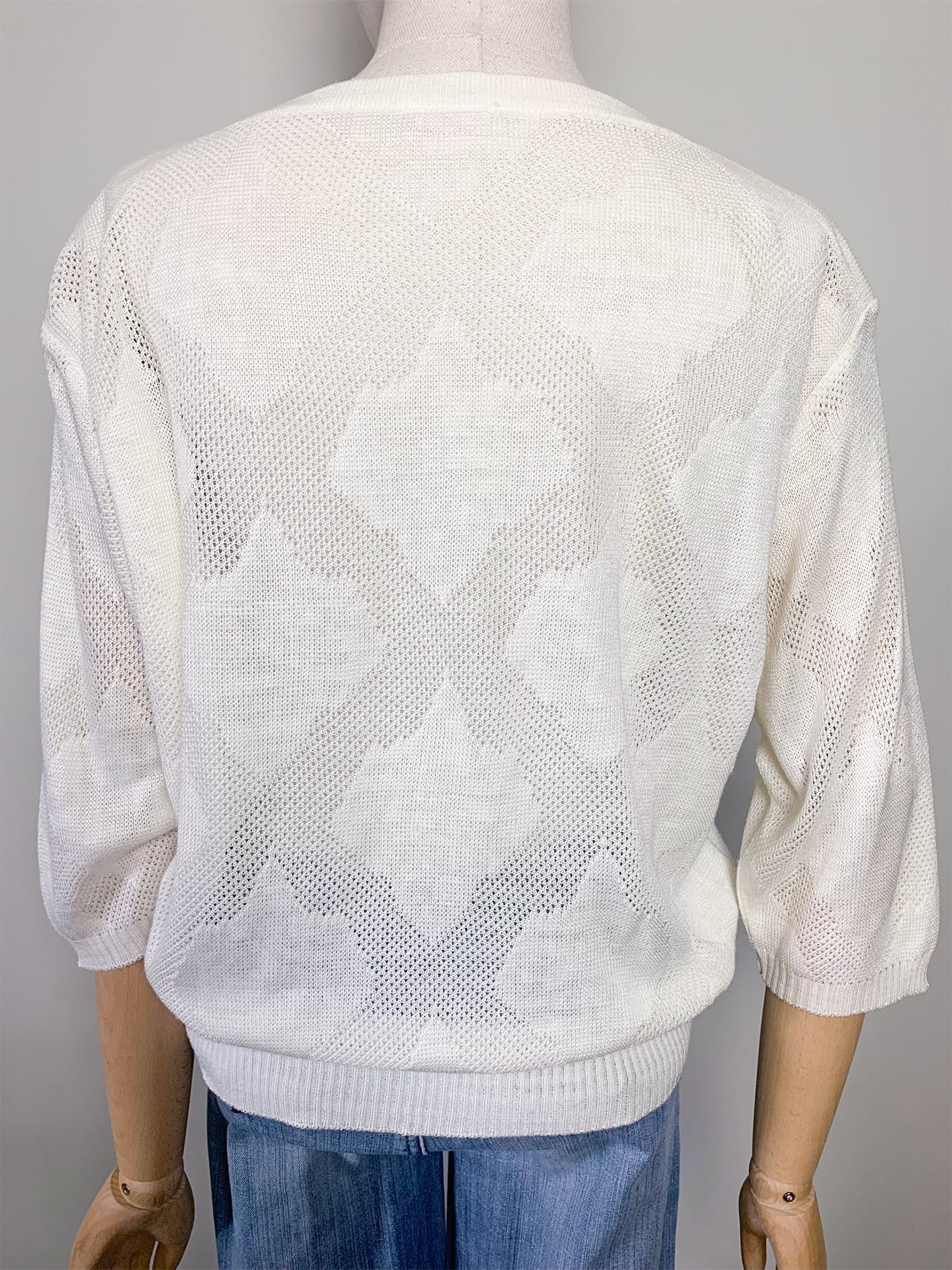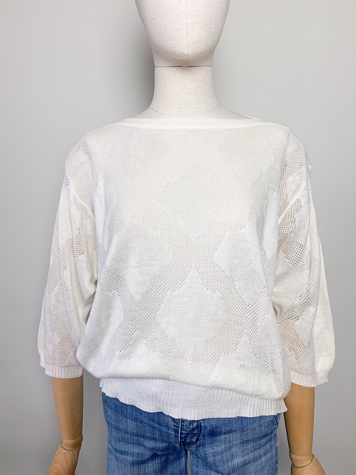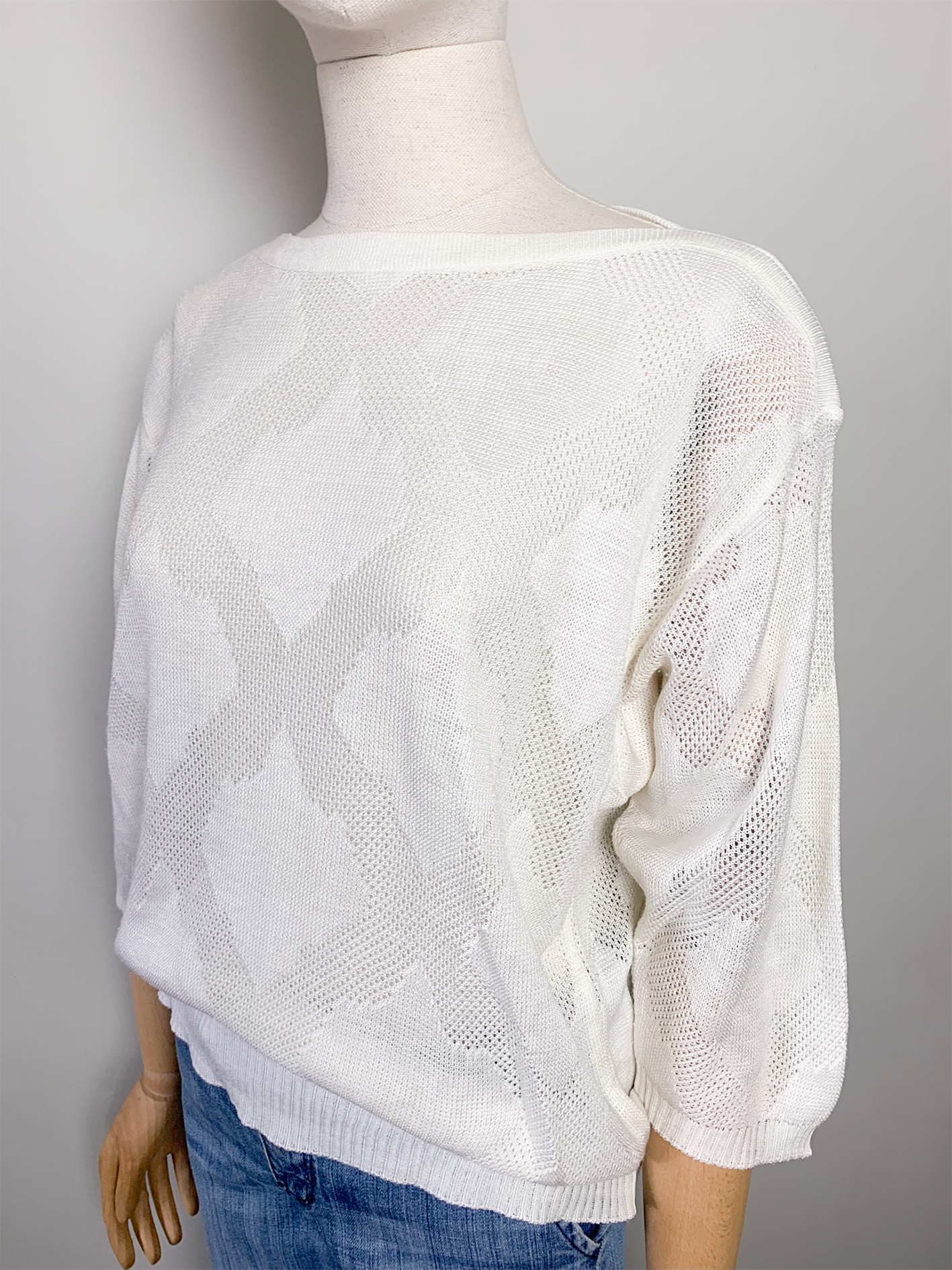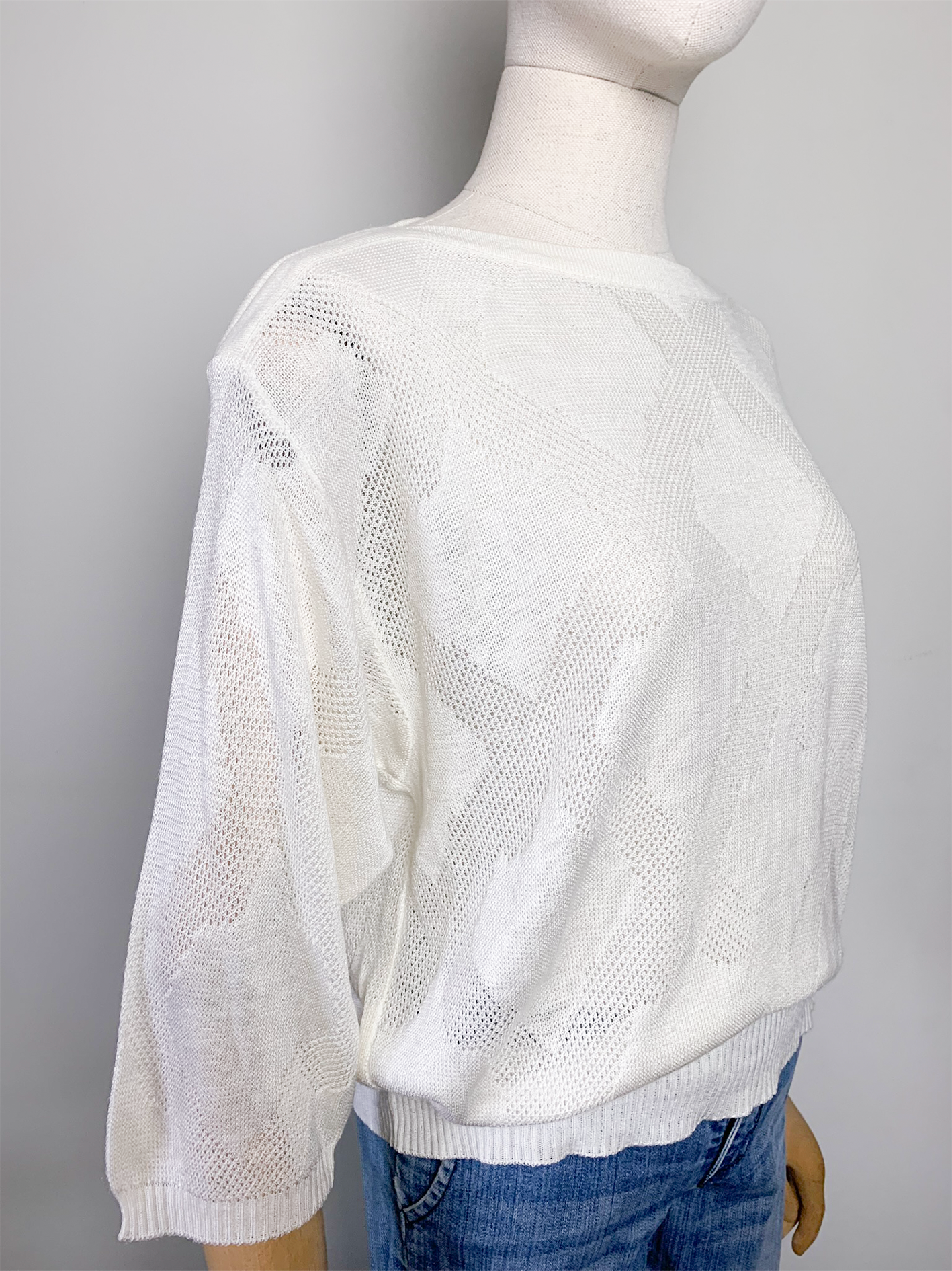 Pull Vintage Damart en Maille Ajourée - Blanc - T. 38