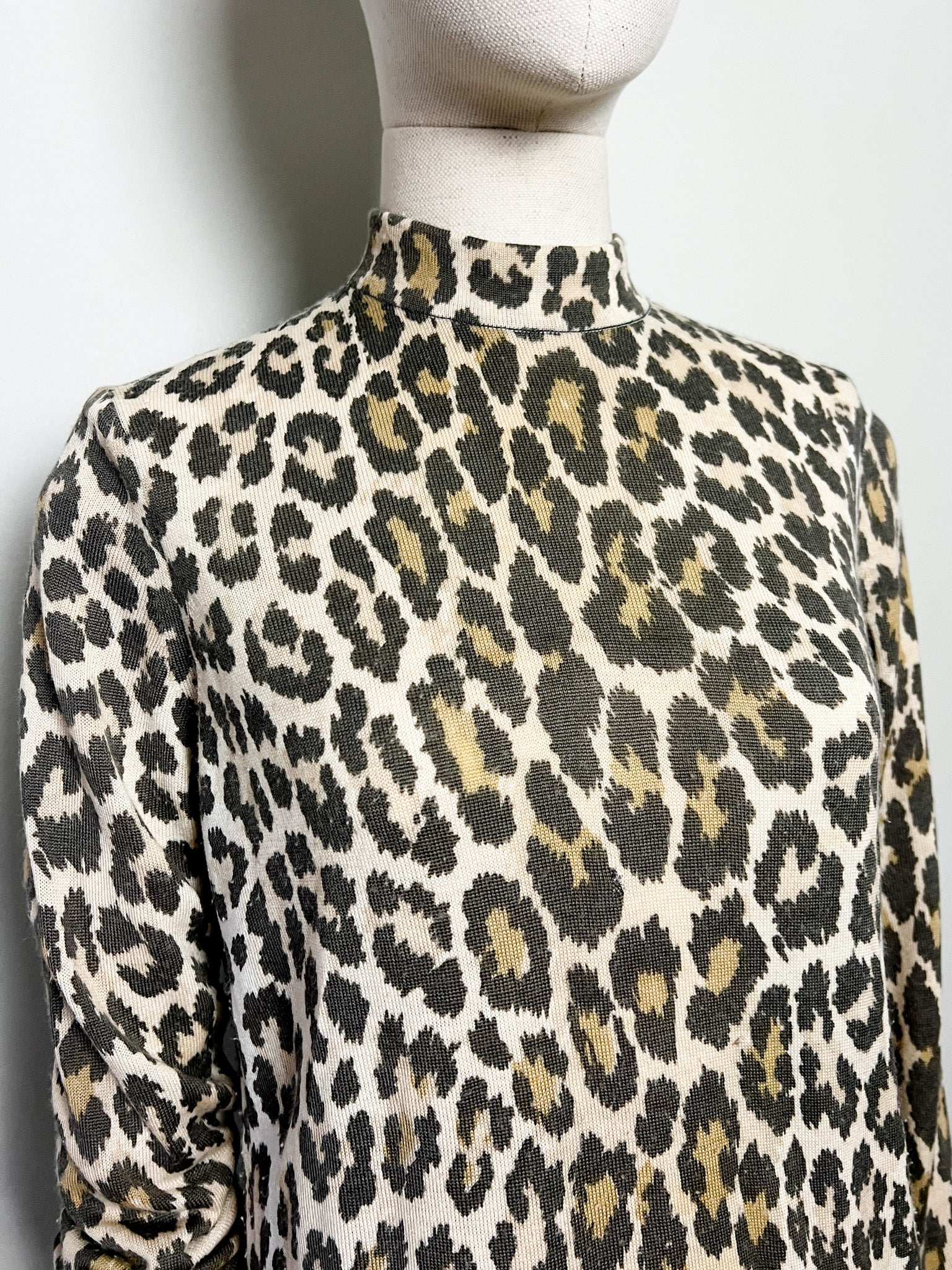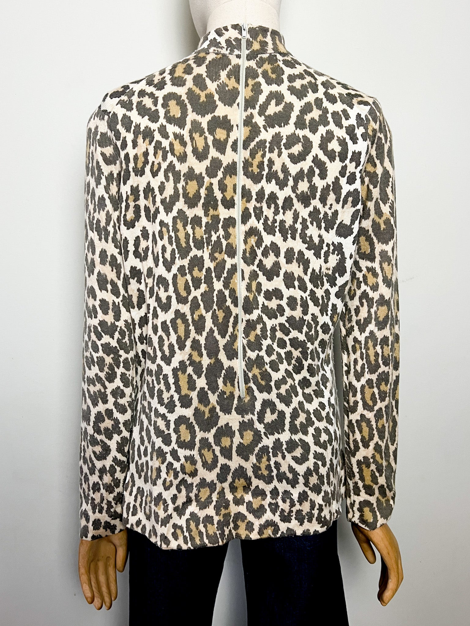 Pull Vintage Léopard Col Montant - Zip Éclair Dos - Rétro Chic Années 80/90 - Taille M/L