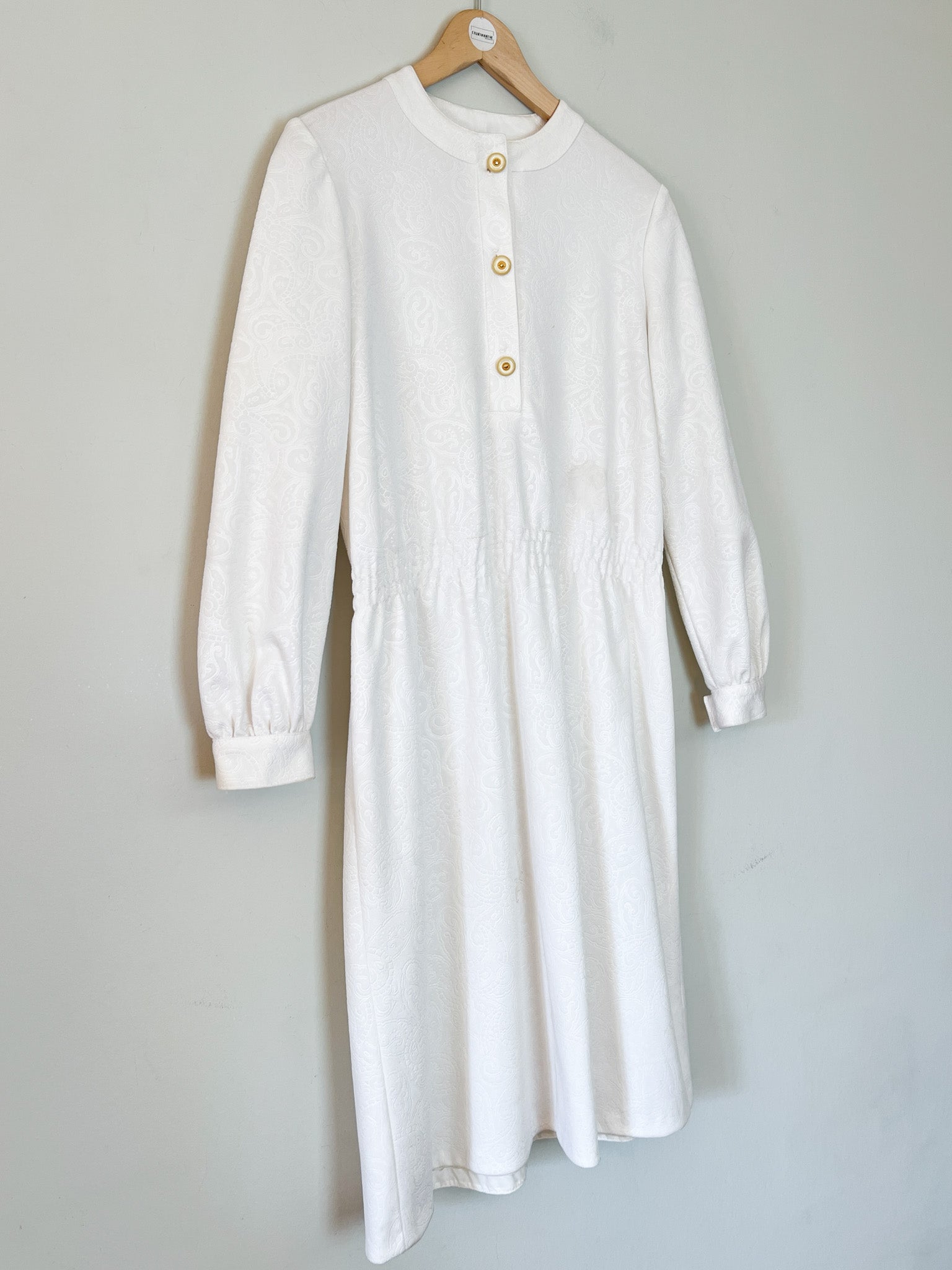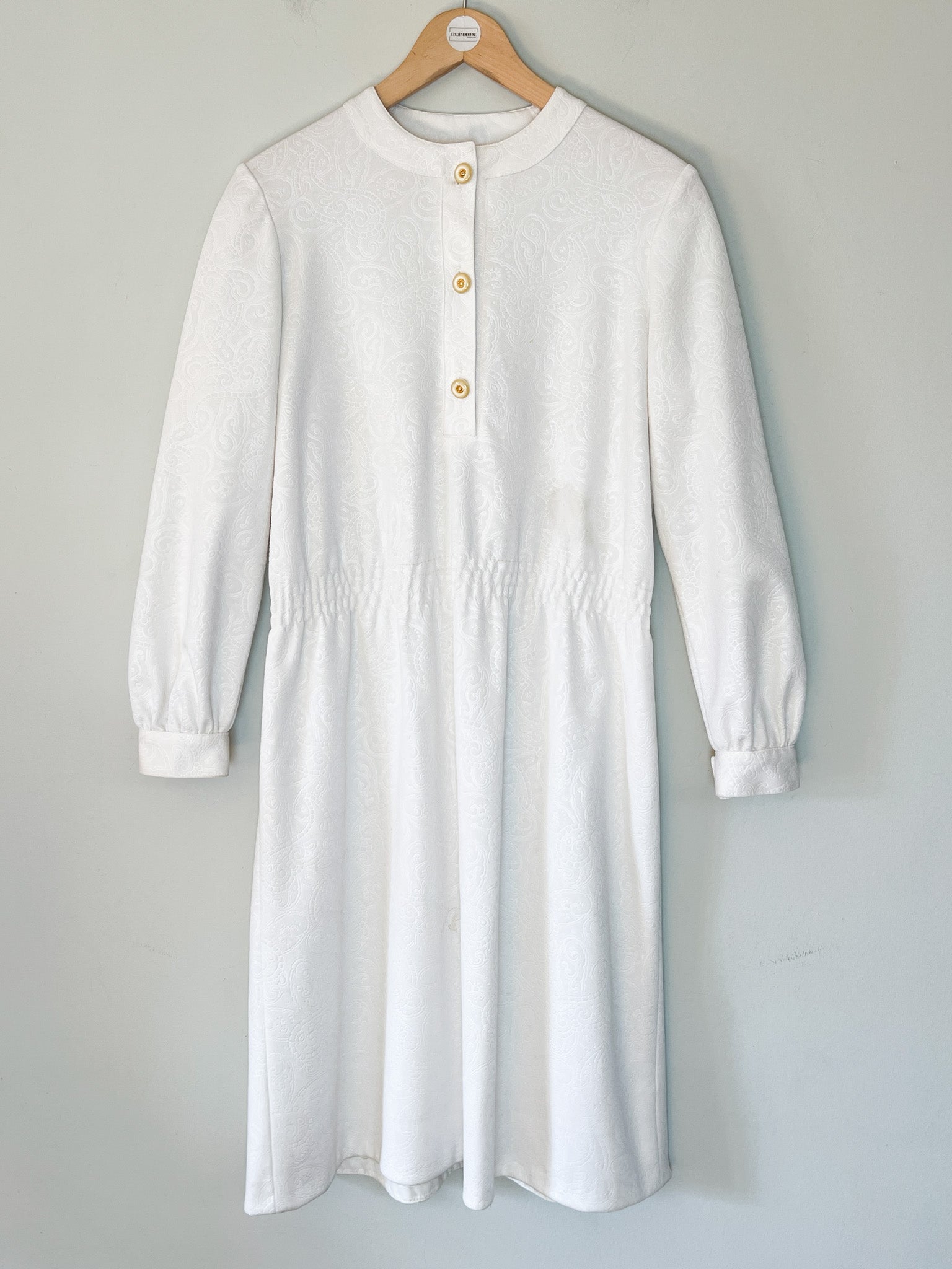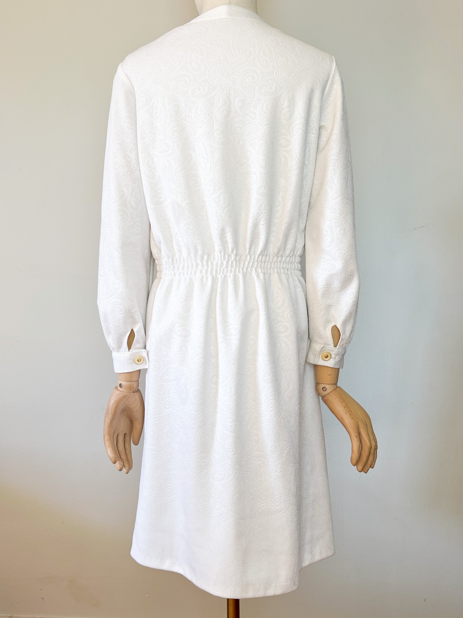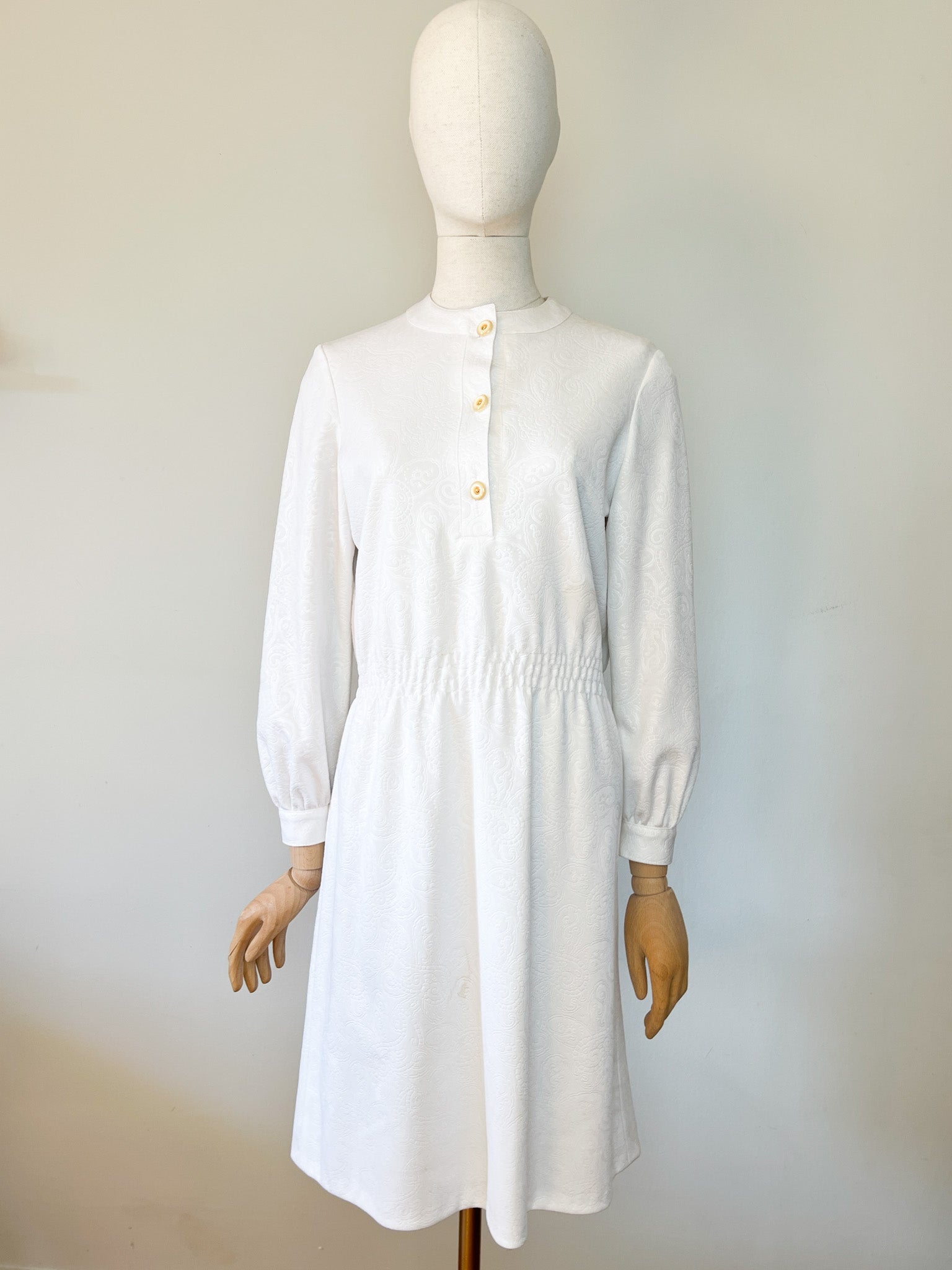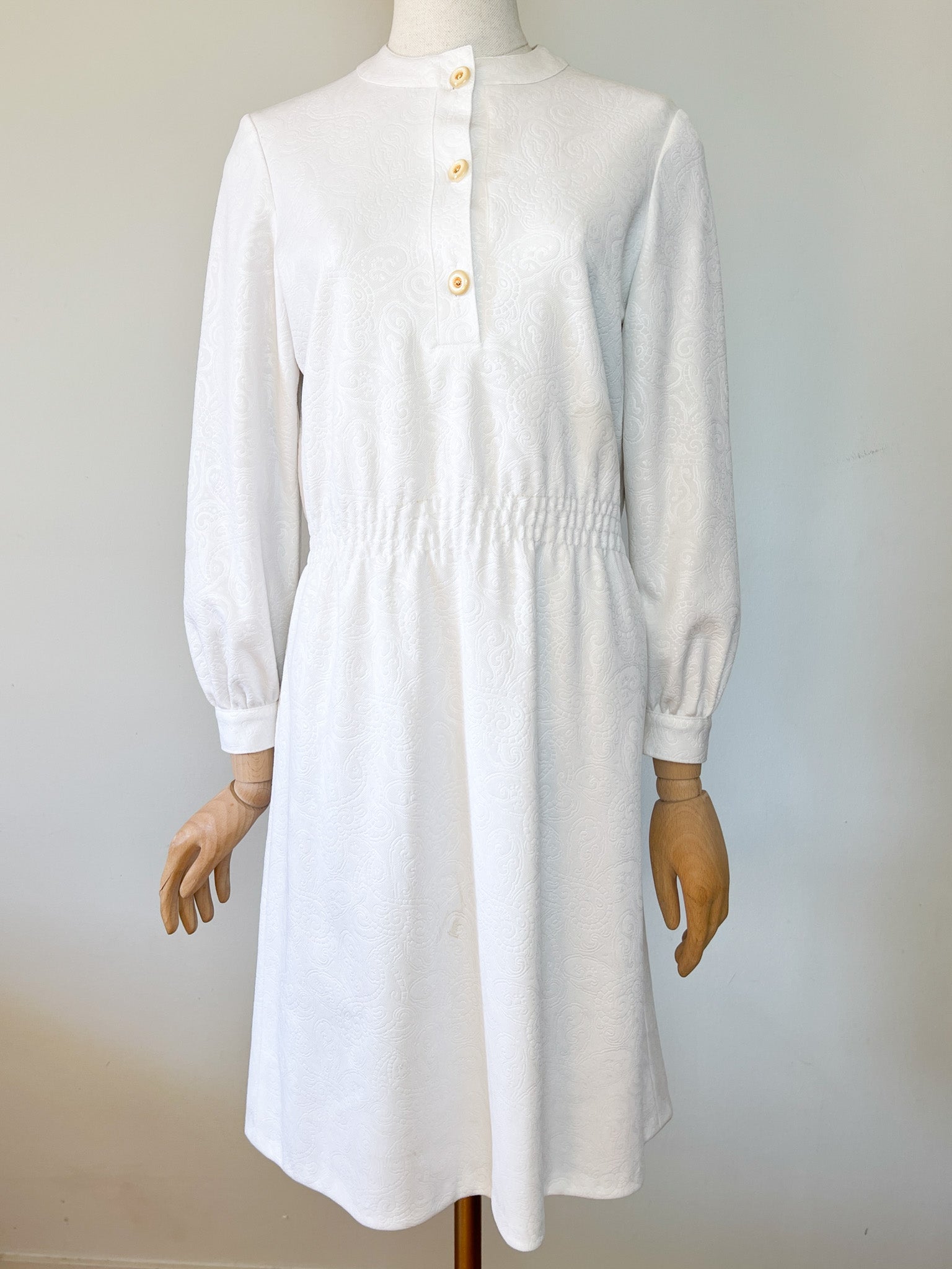Robe Vintage Blanche en Jacquard - Style Années 60-70 - Taille 38