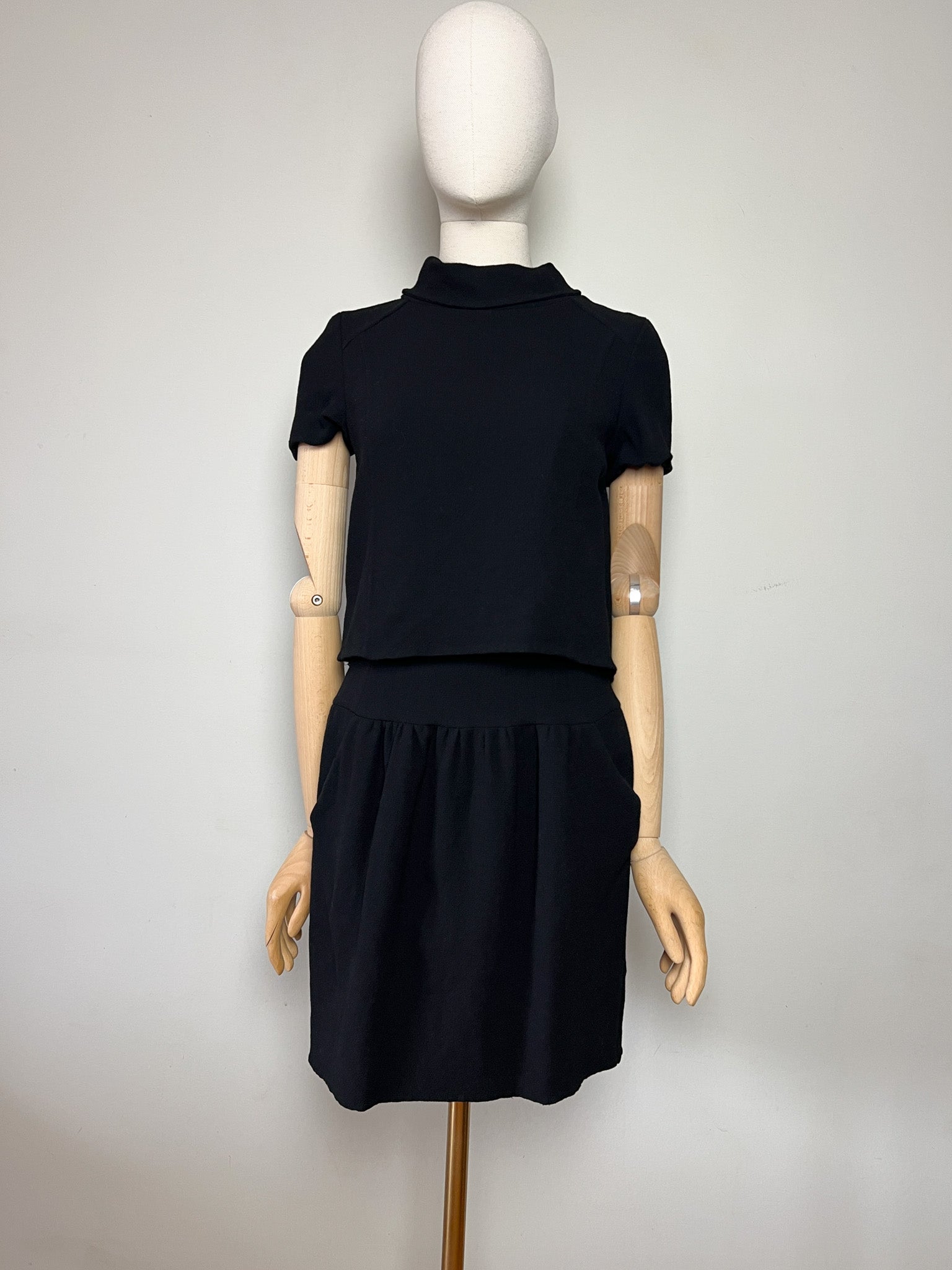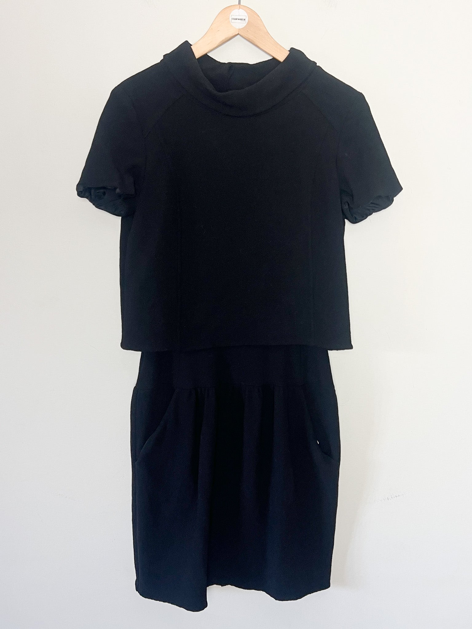 Robe Vintage Oscar de la Renta Noire - 100% Laine - Effet Faux Deux Pièces - Années 80 - Taille 36/38