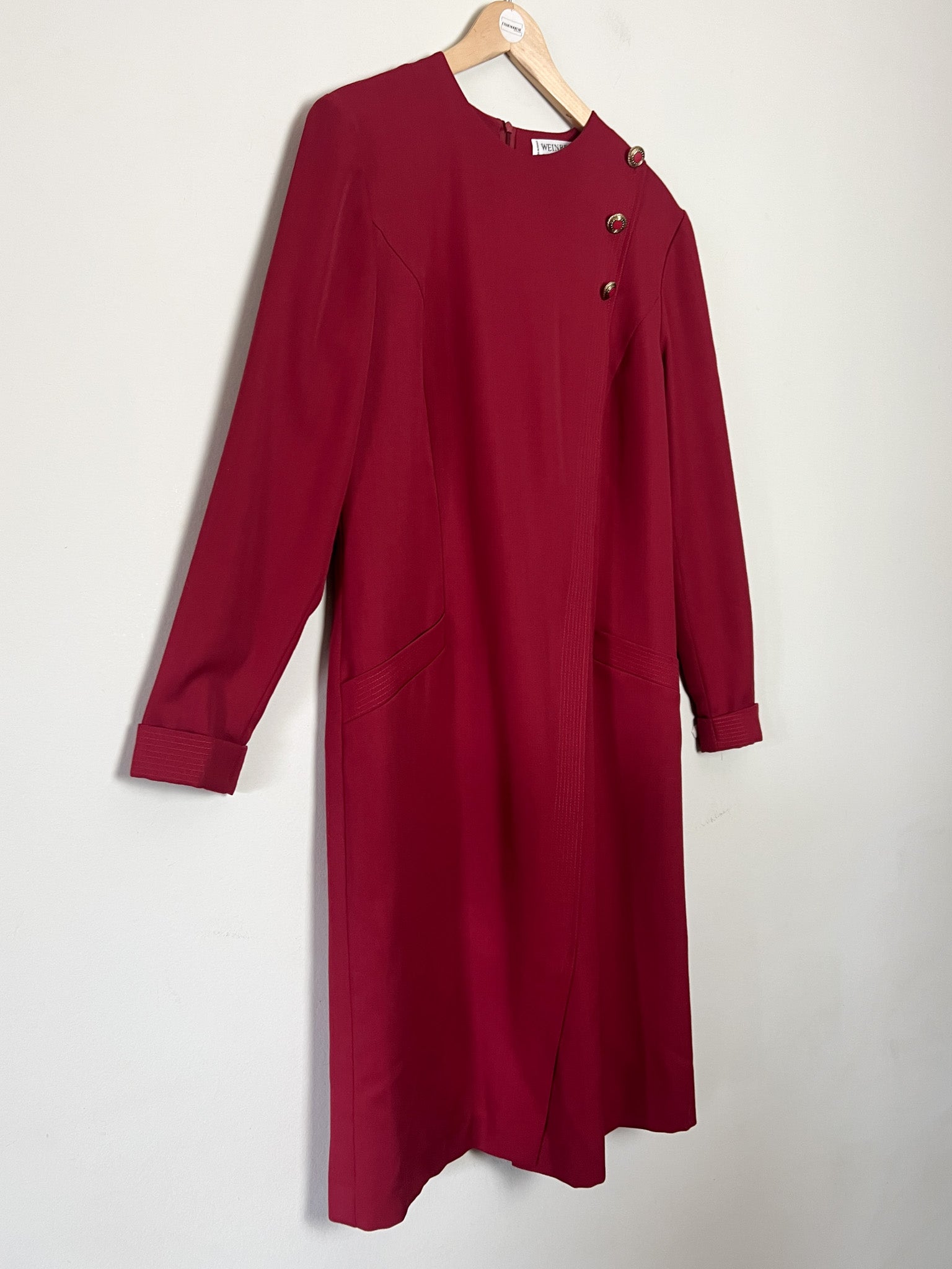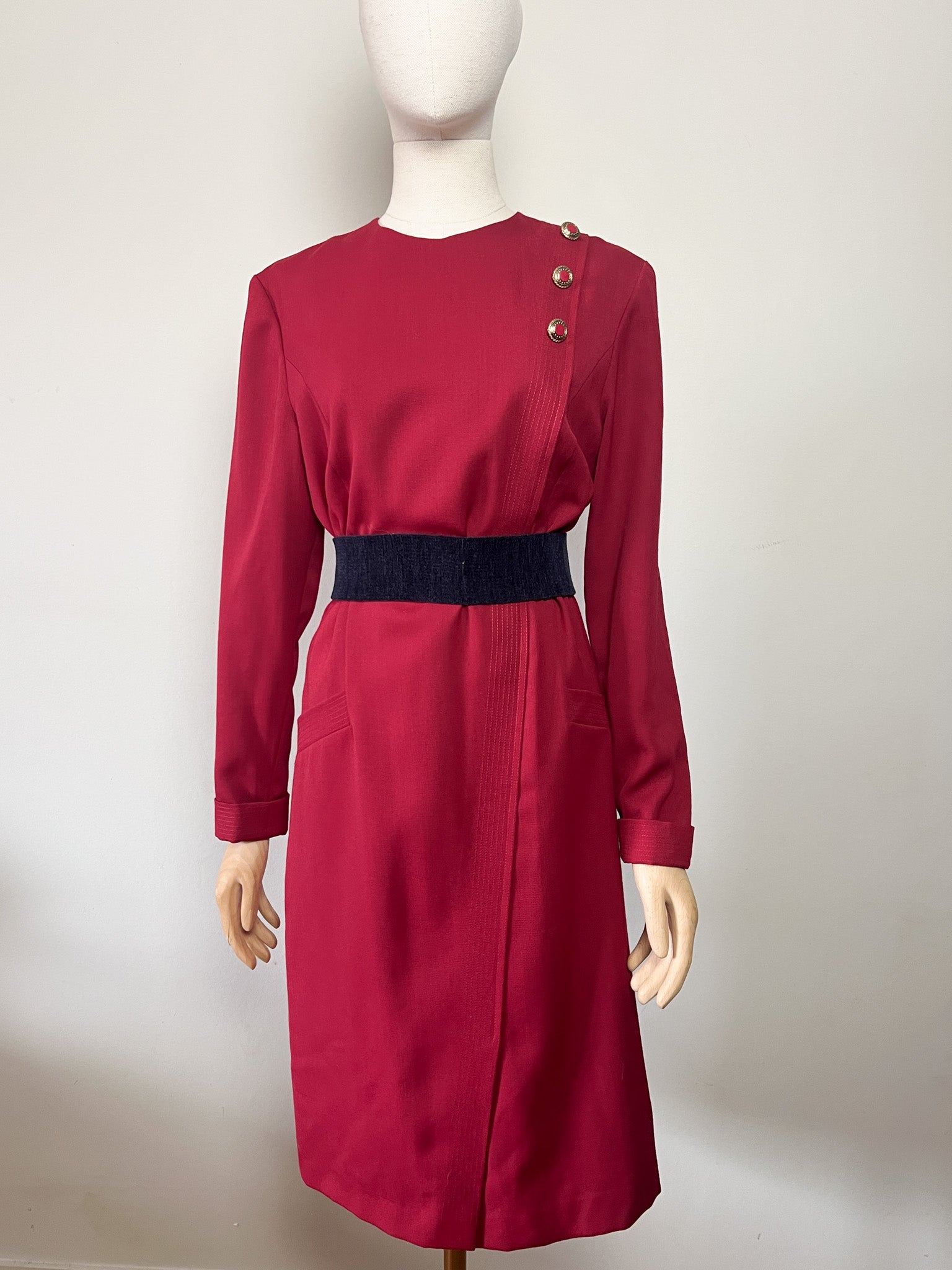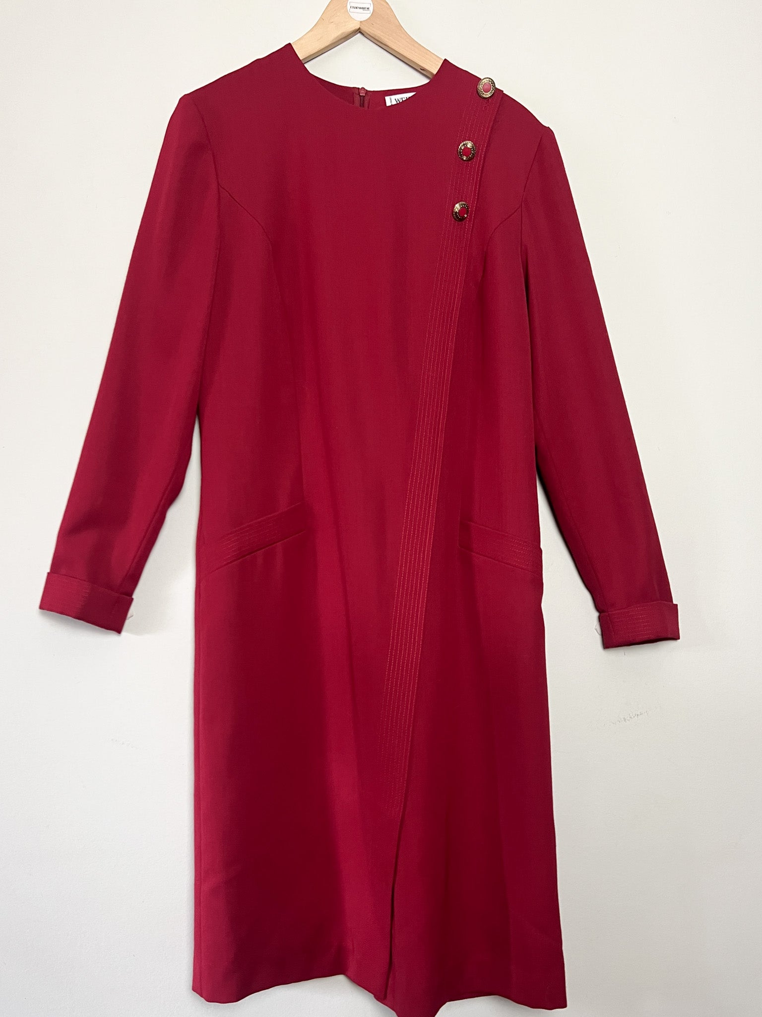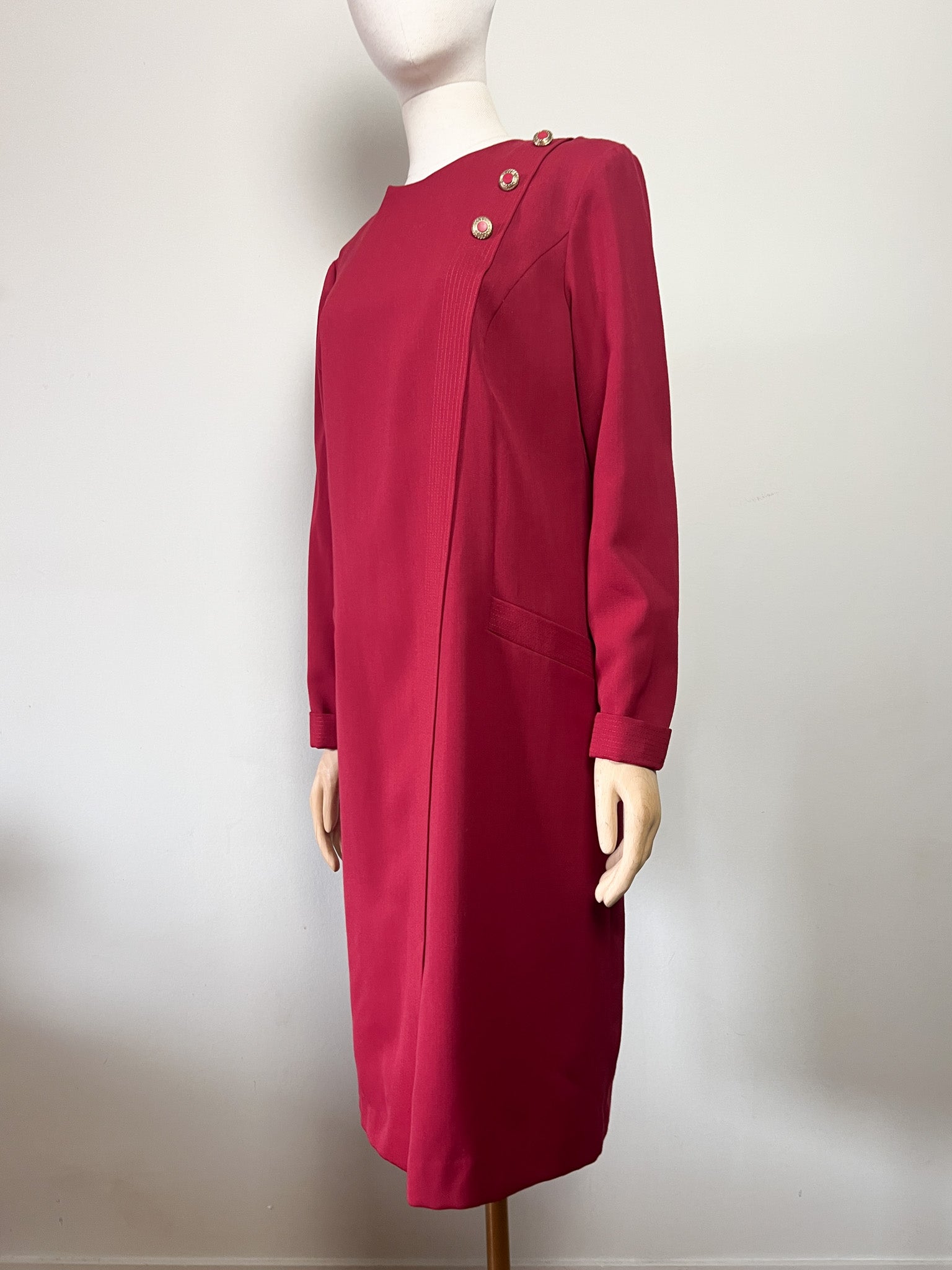 Robe Vintage Weinberg Paris - Rouge Foncé - Détails Boutons et Plis - T. 40