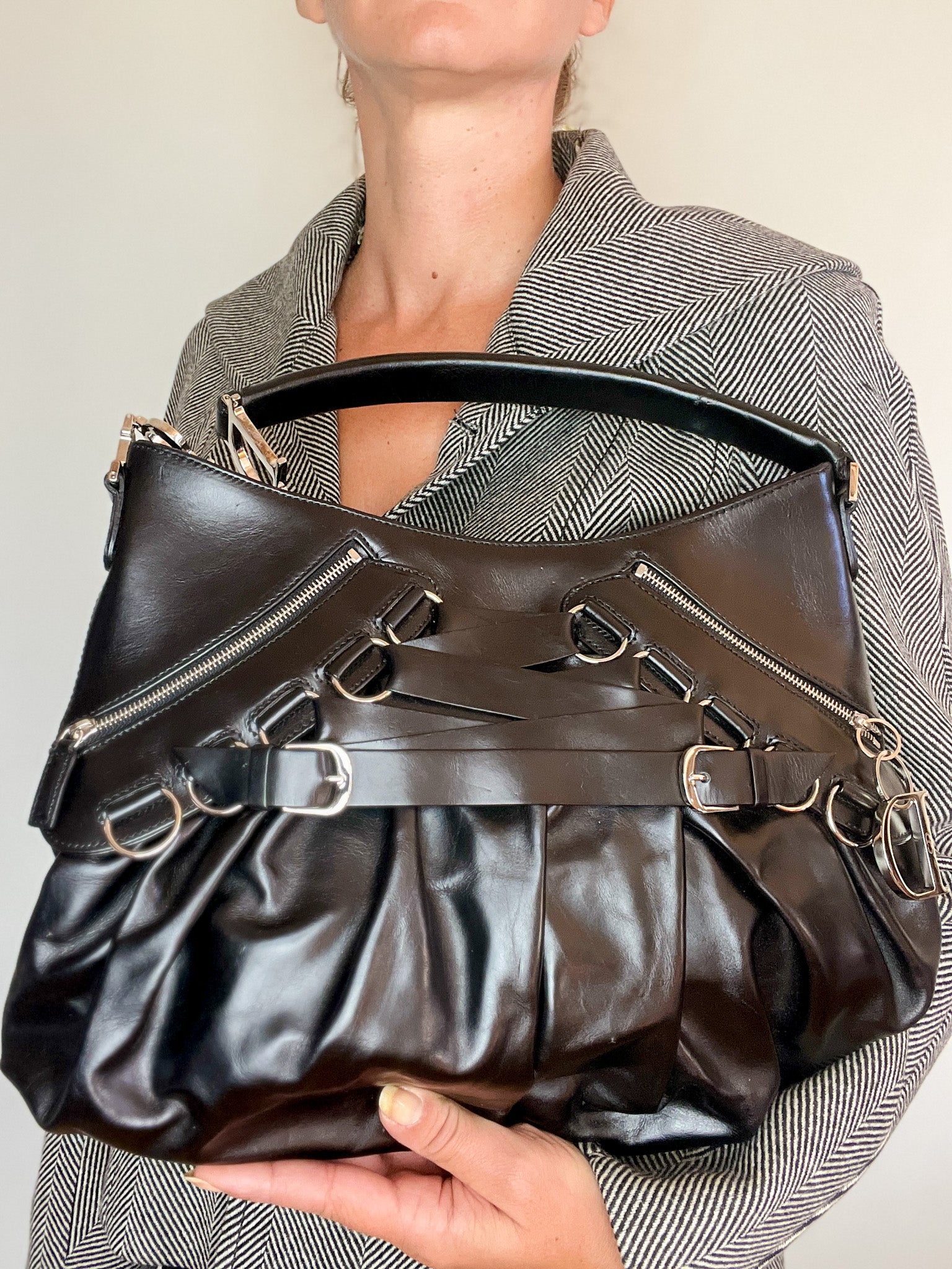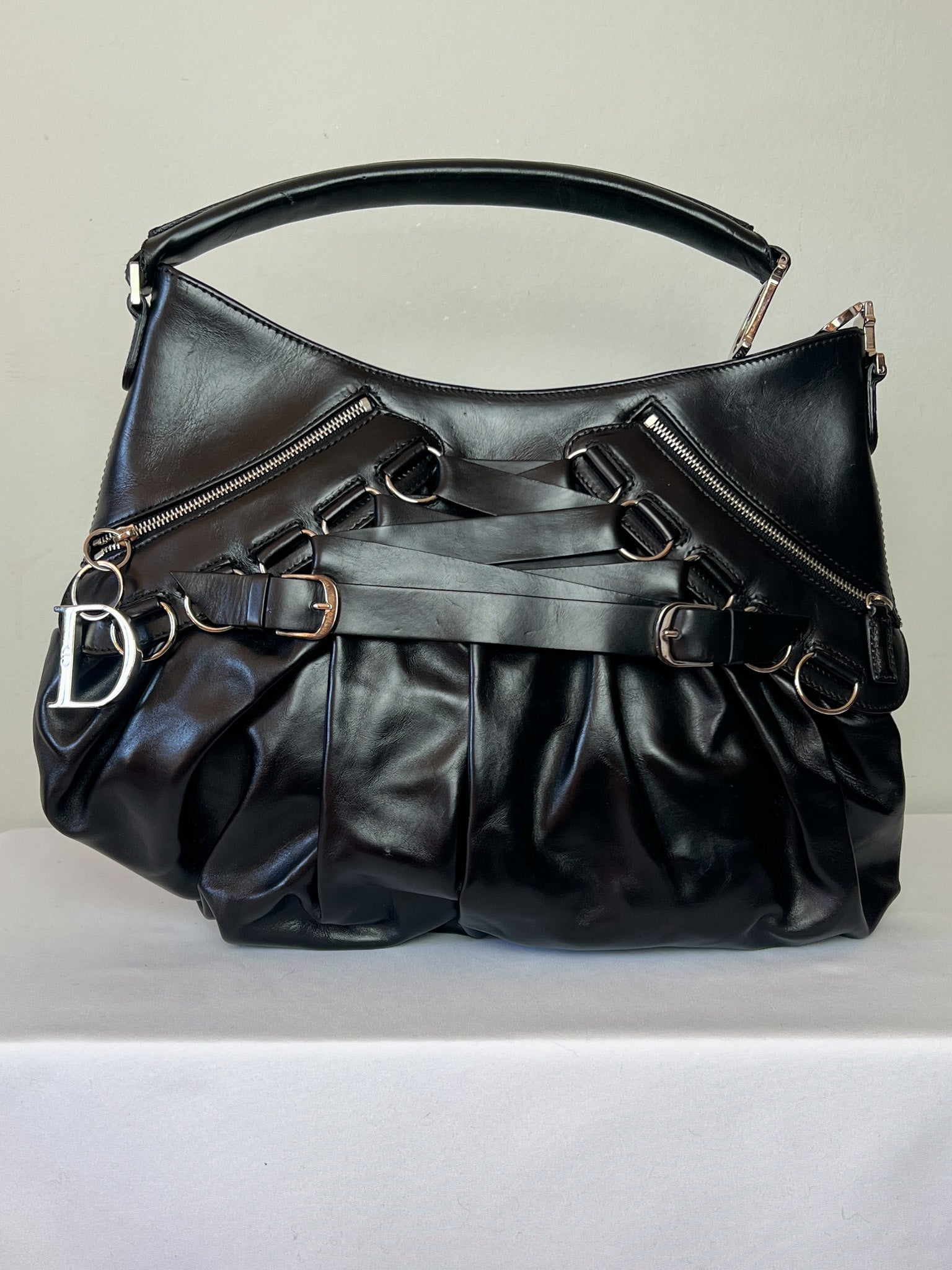 Sac à main CHRISTIAN DIOR "Ballet Corset" Période John Galliano - Cuir Noir - Zips & Sangles Multiples - Années 2000 - Pièce Archive