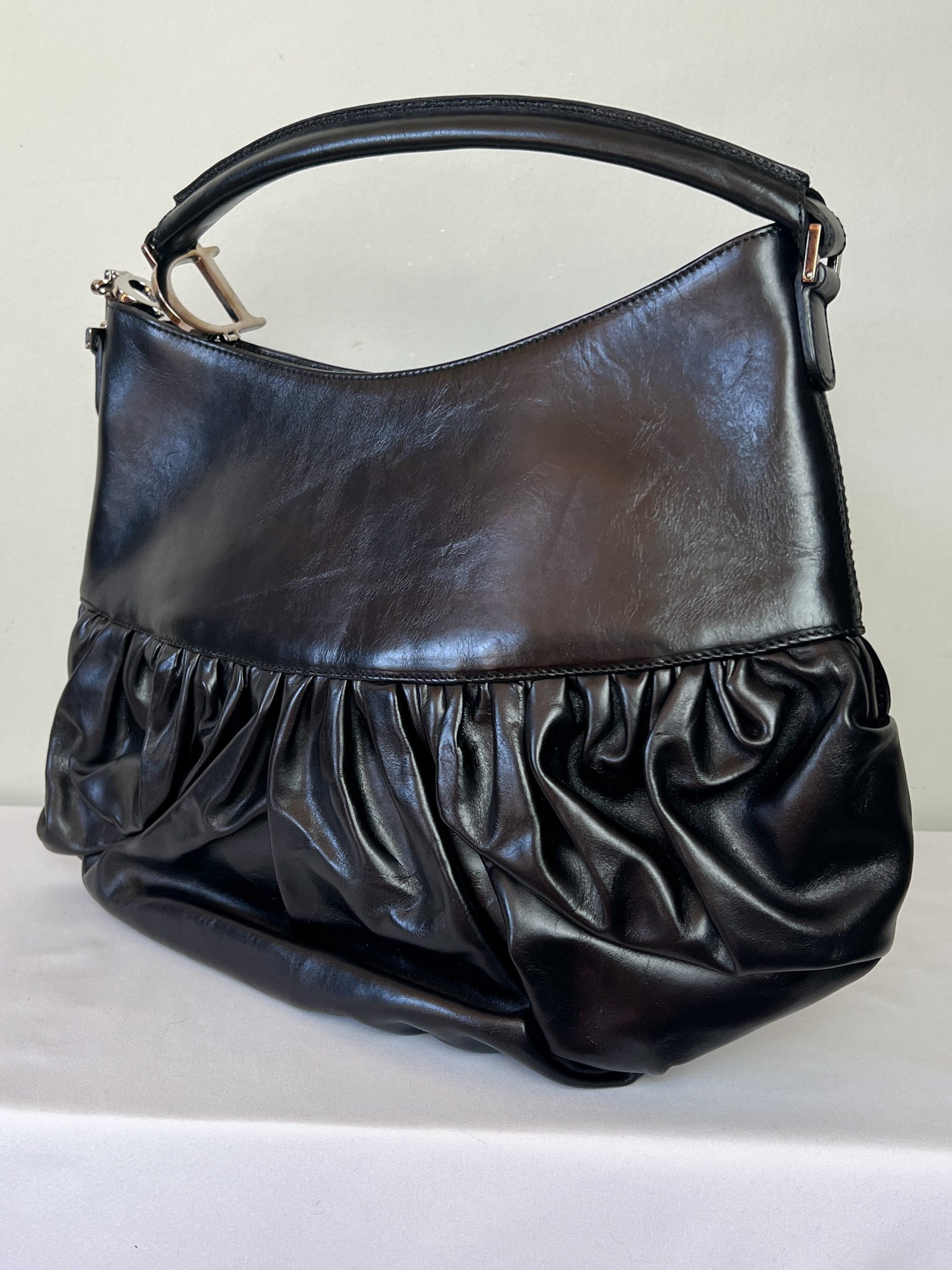 Immergez-vous dans l'esthétique audacieuse et reconnaissable de John Galliano pour Christian Dior avec ce magnifique sac à main en cuir noir, issu de la collection iconique "Ballet Corset" et datant des années 2000 ! Son numéro de série "13 BM 0054" indique une fabrication en mai 2004. Cette pièce emblématique a été acquise lors d'une vente privée Dior en 2006, un détail attesté par un poinçon sur son étiquette intérieure en cuir, garantissant son authenticité et son histoire exclusive.