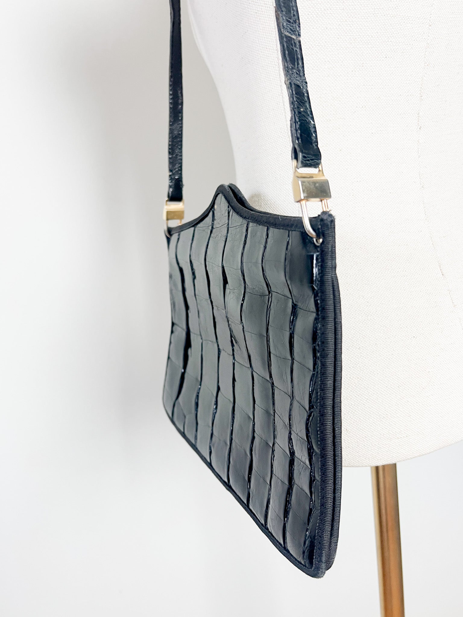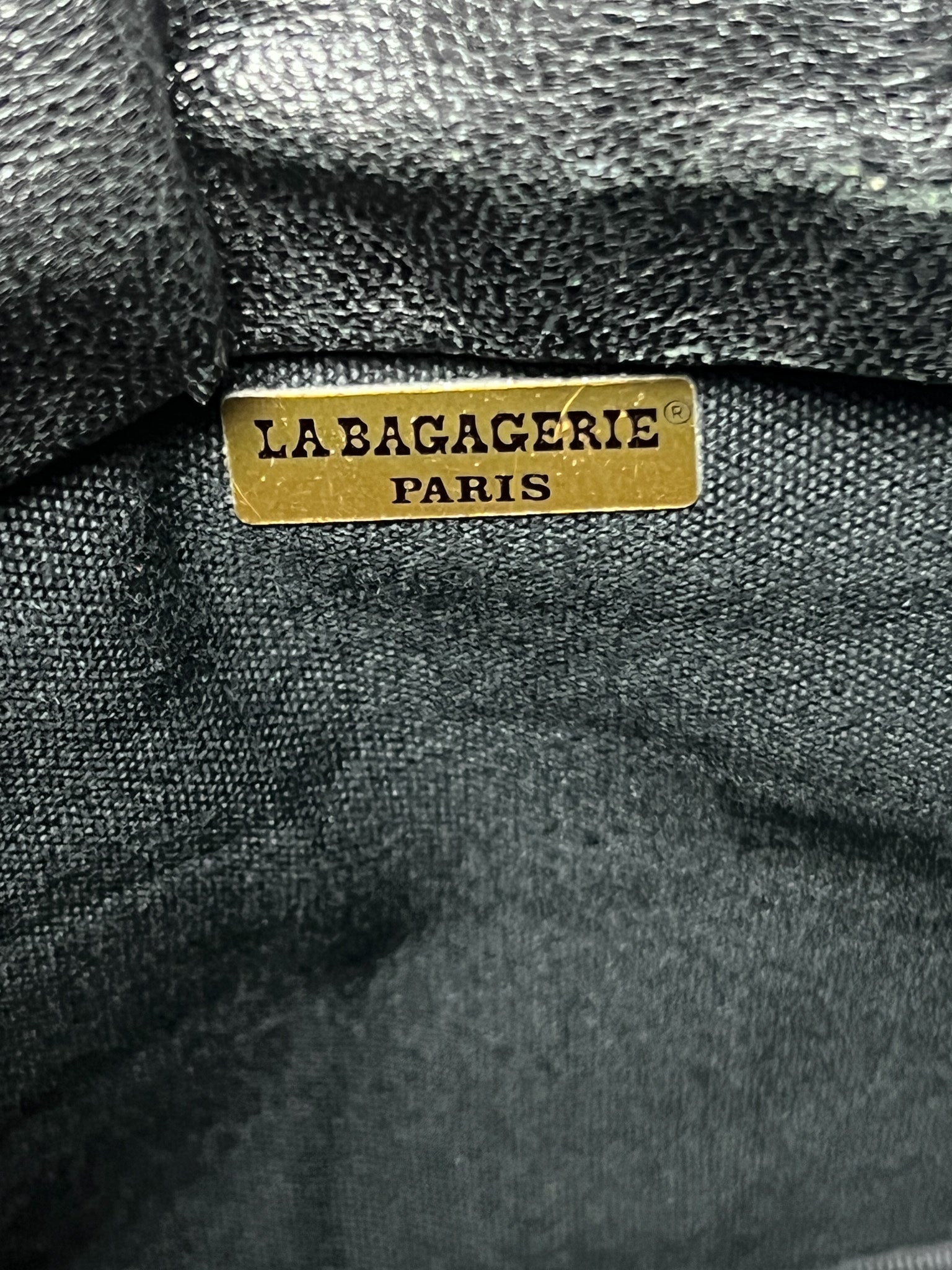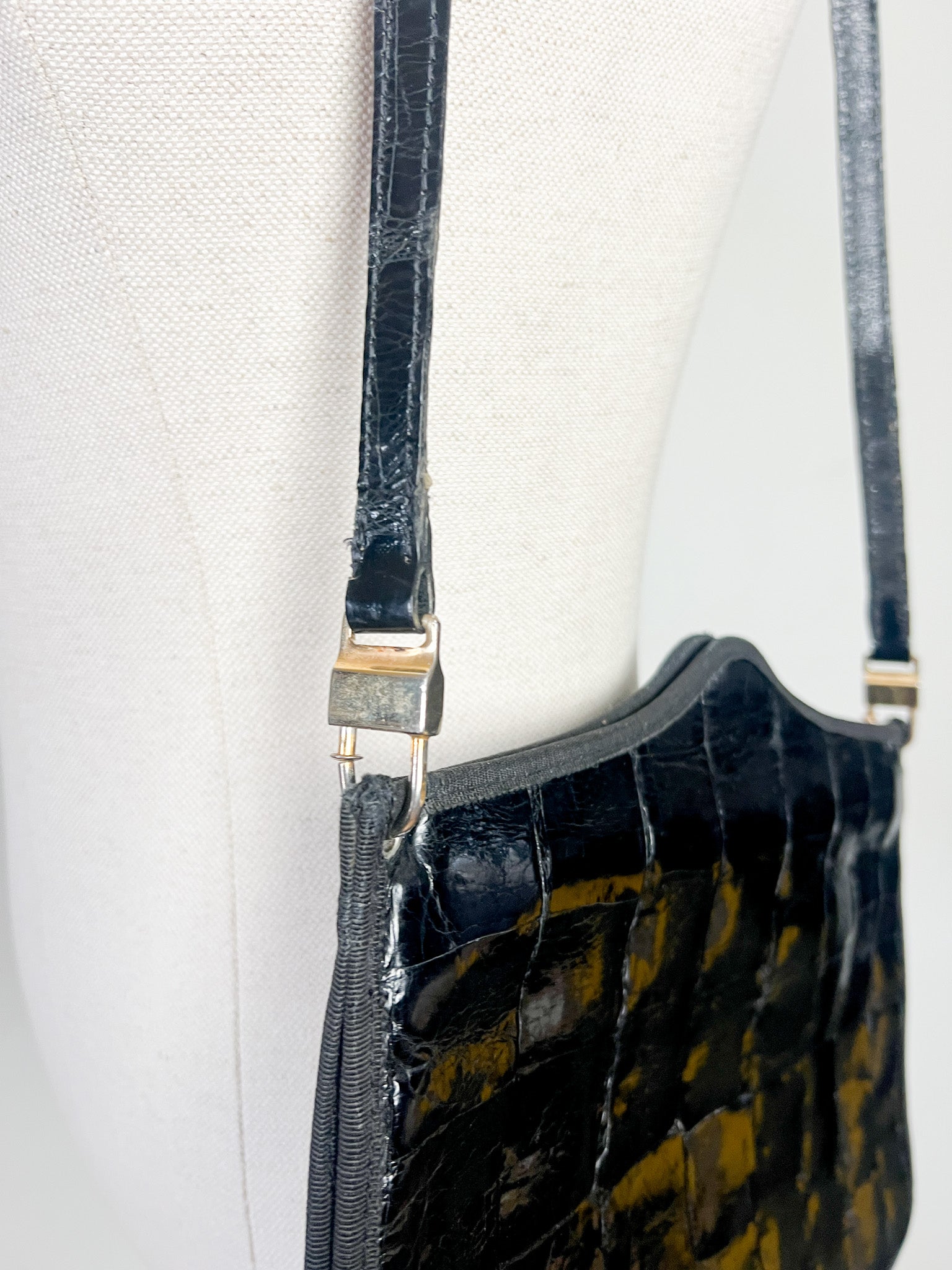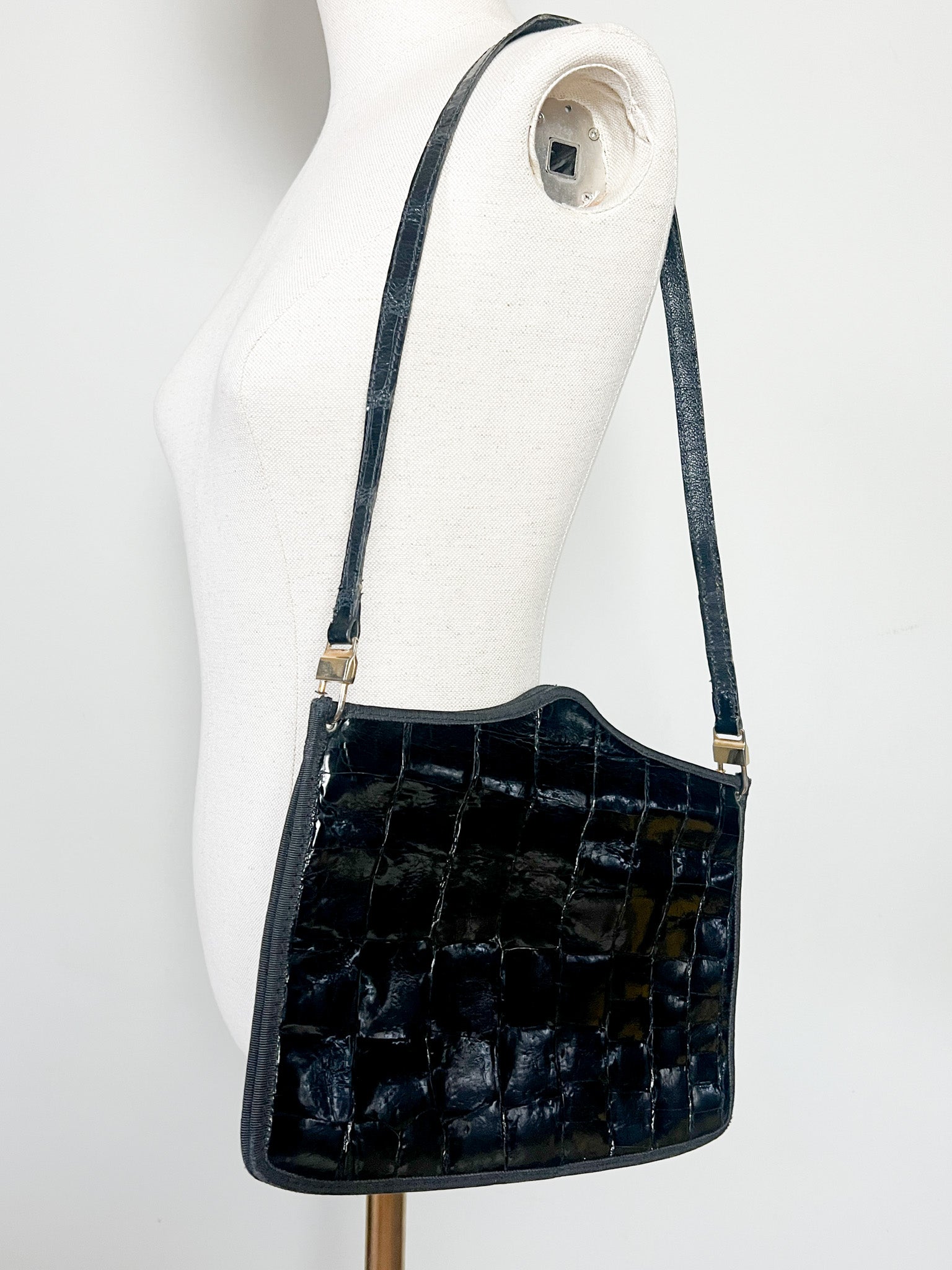 Pochette/Sac Épaule La Bagagerie Vintage - Cuir Verni Noir Gaufré Façon Croco