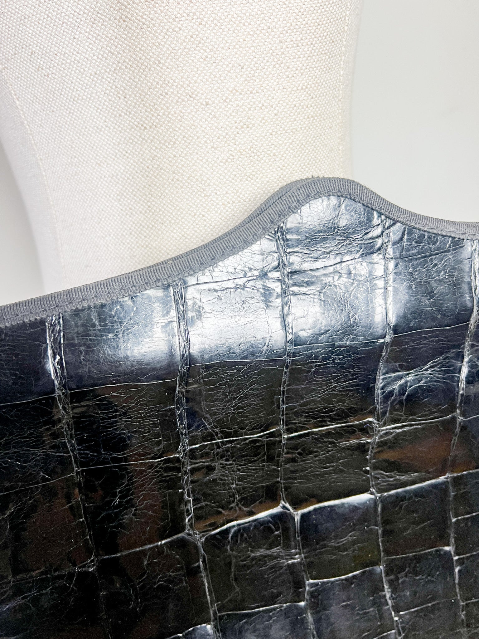Un classique de la maroquinerie française : ce sac vintage La Bagagerie est confectionné en 100% cuir verni noir avec une élégante texture façon croco gaufrée. Sa taille idéale le rend parfait pour passer d'un accessoire de jour chic à une pochette de soirée sophistiquée.