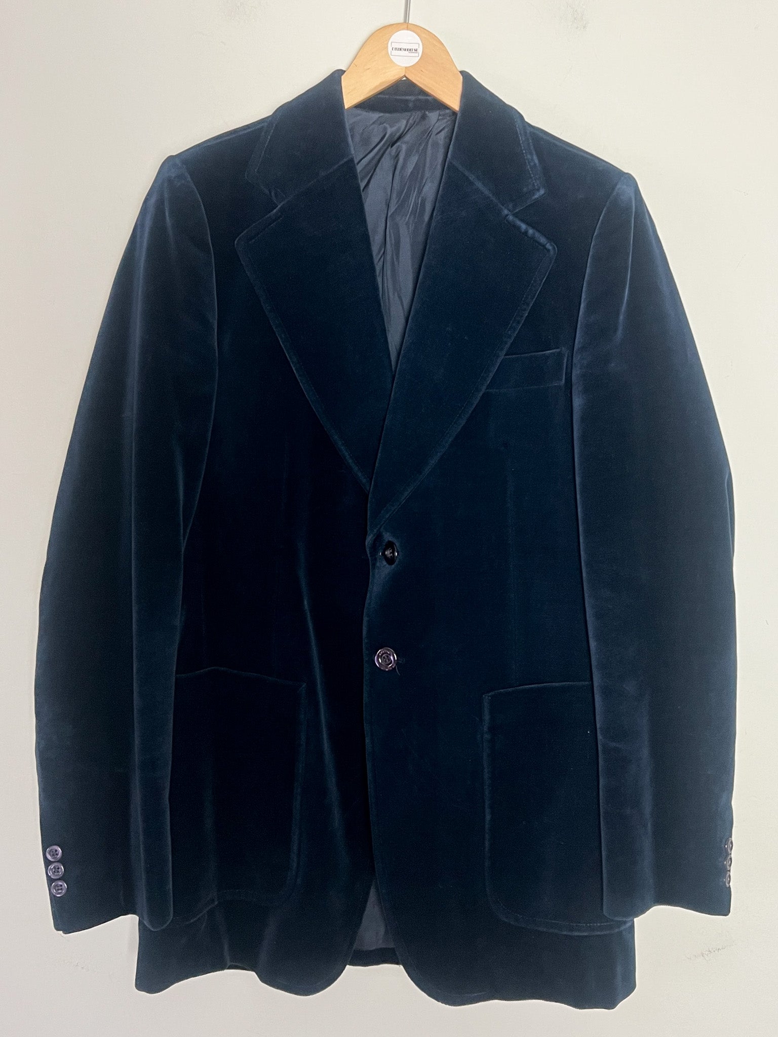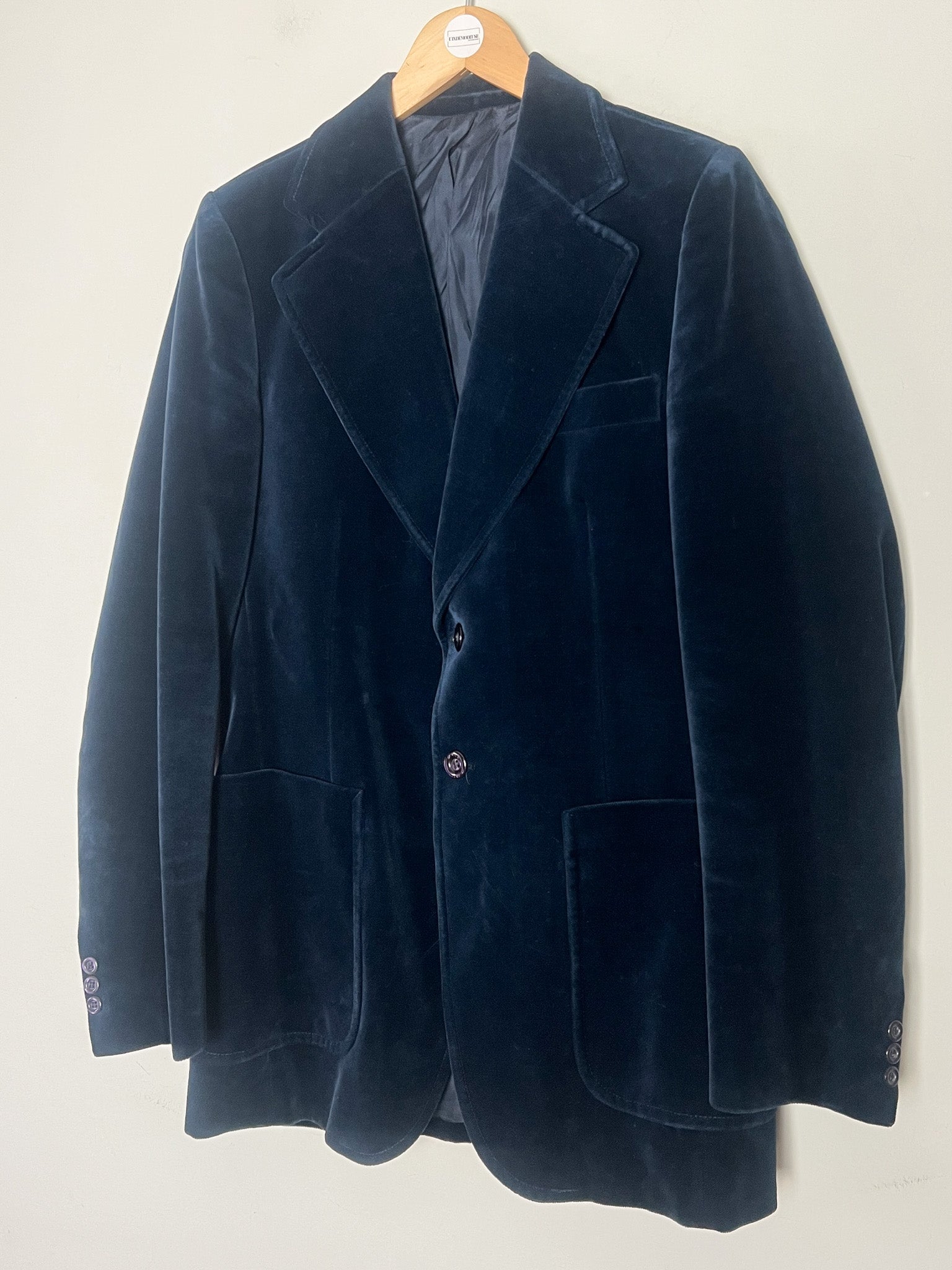 Veste Blazer Vintage années 90 Cintrée Velours de Coton Bleu Marine - Doublure Viscose - Chic Classique T40 (L)