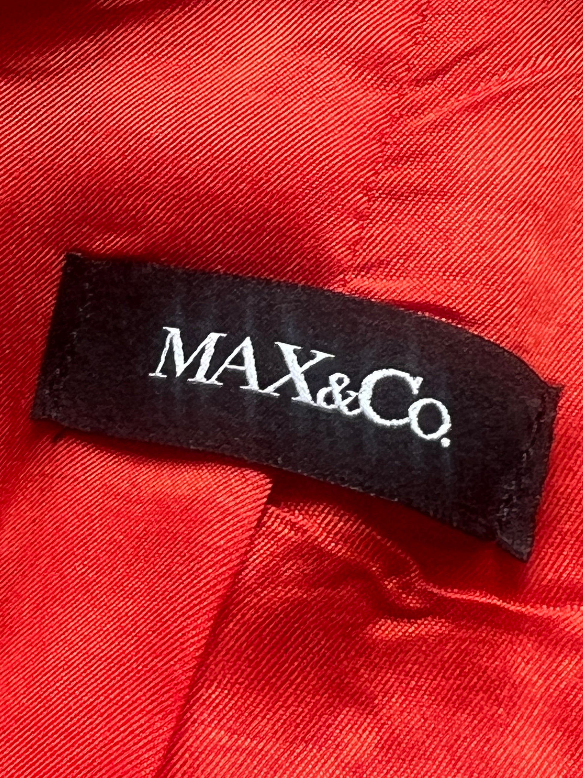 Ajoutez une touche de couleur et d'élégance à votre dressing avec cette veste chic de la marque italienne Max&Co. Sa coupe cintrée et son coloris vif rouge-orangé en font une pièce forte pour un look audacieux, que ce soit pour le bureau ou une sortie.