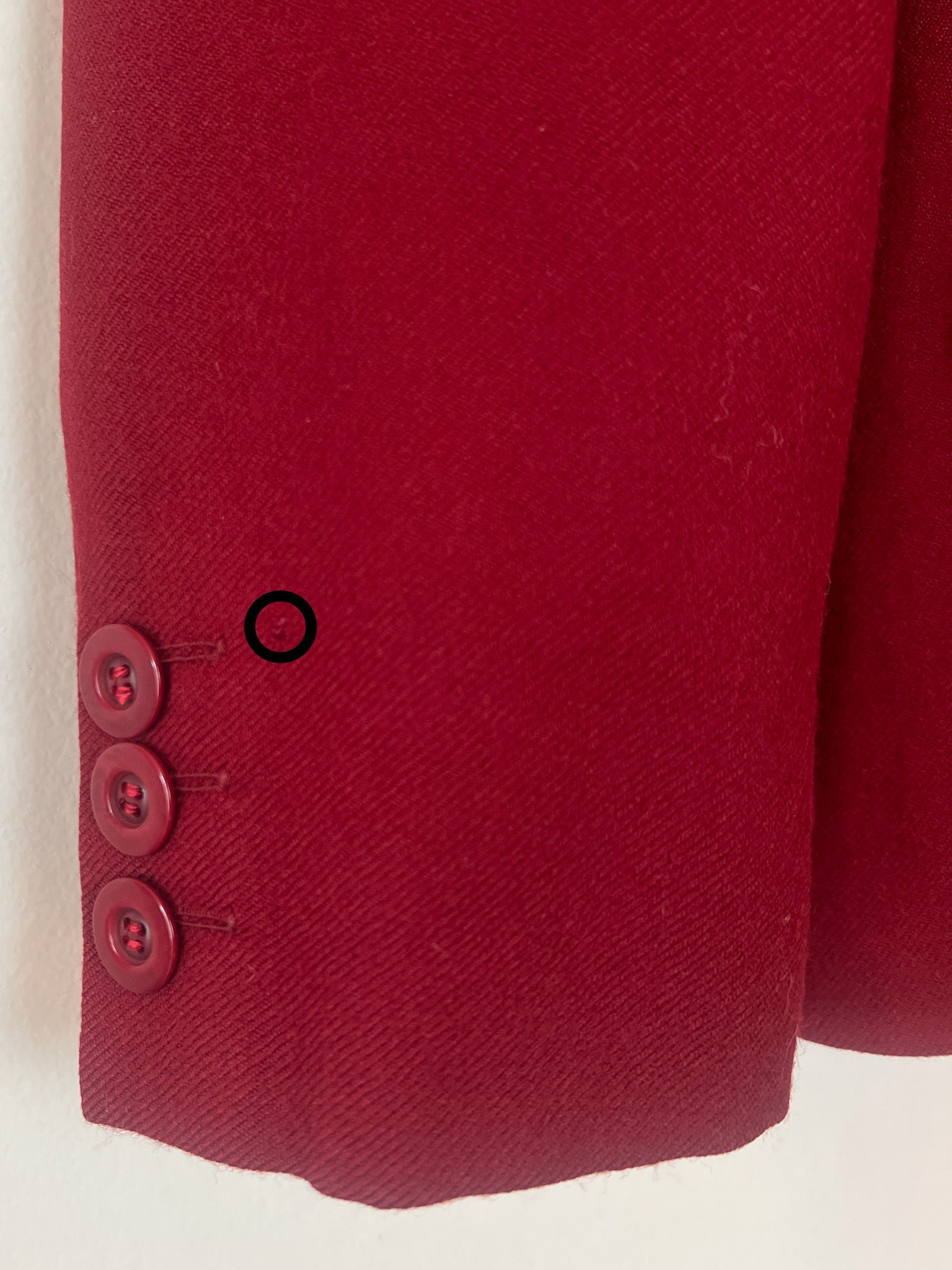 État : Cette veste est en très bon état général, mais de petites retouches sont à prévoir sur le tissu au niveau du bas des manches et du bas du dos.